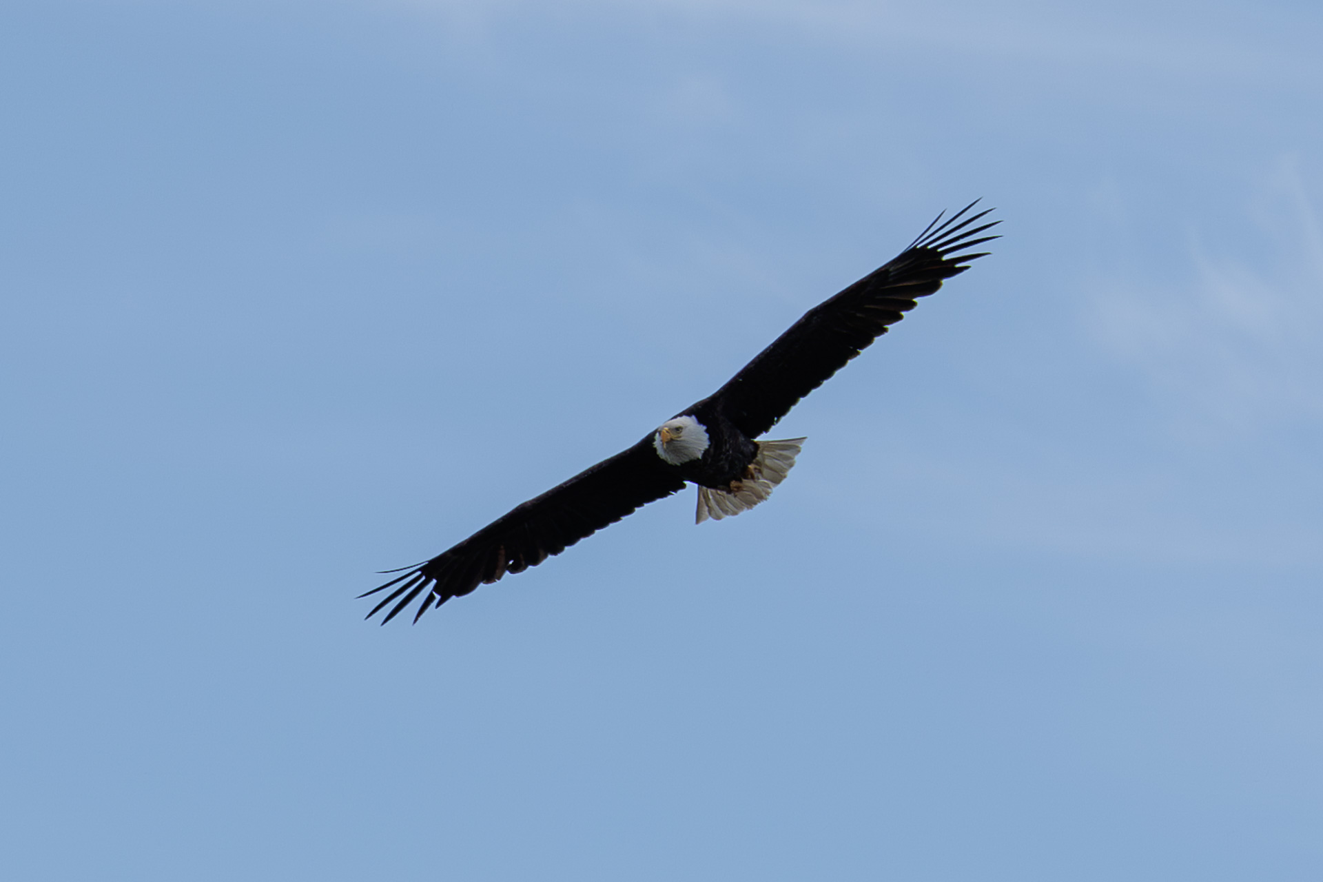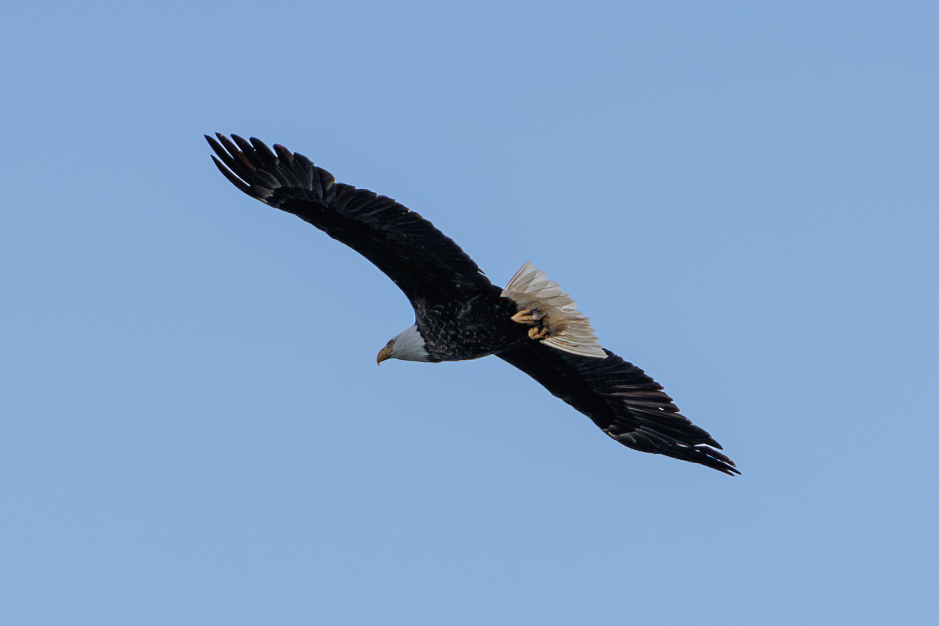 Le beau vol d’un pygargue à tête blanche que nous avons failli louper avec son vol parfaitement silencieux 🤩 !