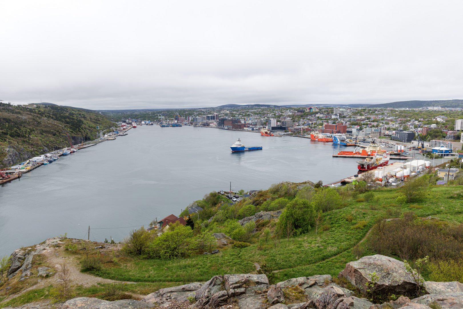 Du sommet, nous avons une vue magnifique sur le port de Cupids,