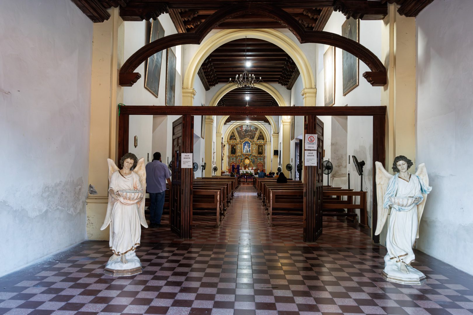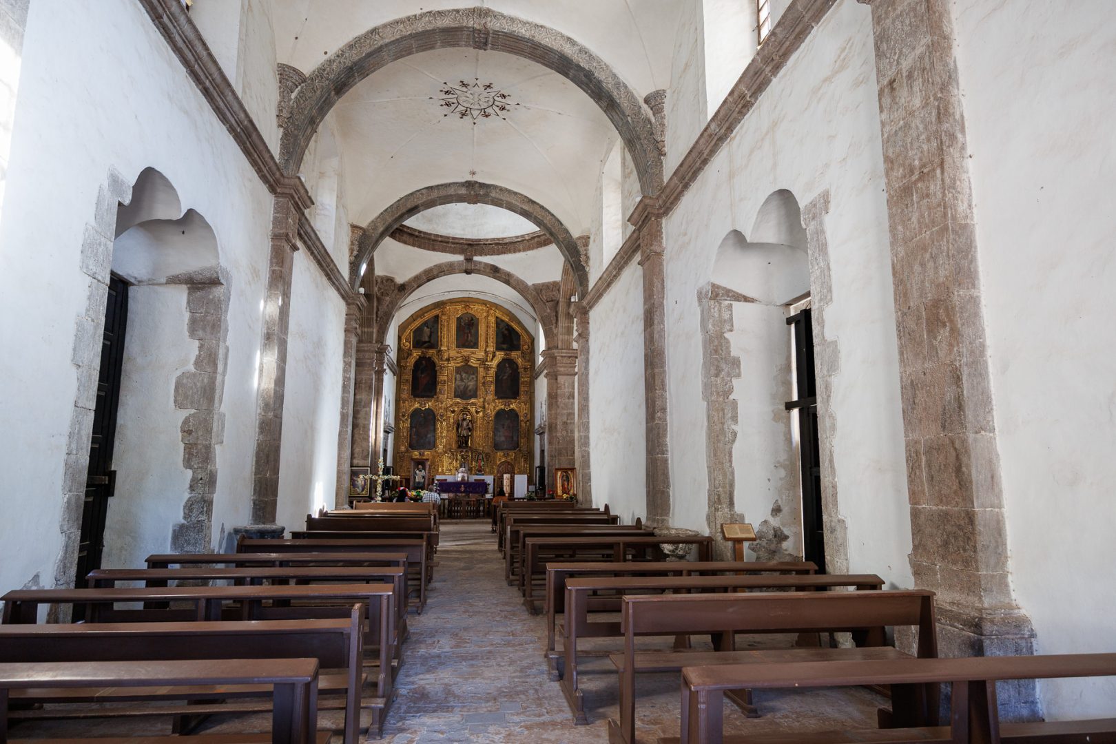 Un magnifique retable recouvert de feuilles d’or et orné de neuf images peintes de chérubins et de saints se dresse au bout de la longue nef centrale de l’église et entoure la statue de la Vierge de Lorette. Il s’agit de la même statue rapportée d’Espagne par le père Juan Maria Salvatierra.