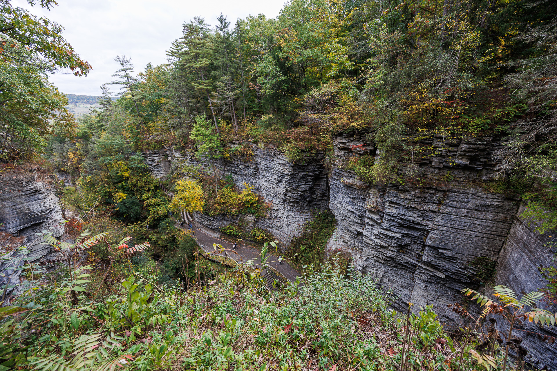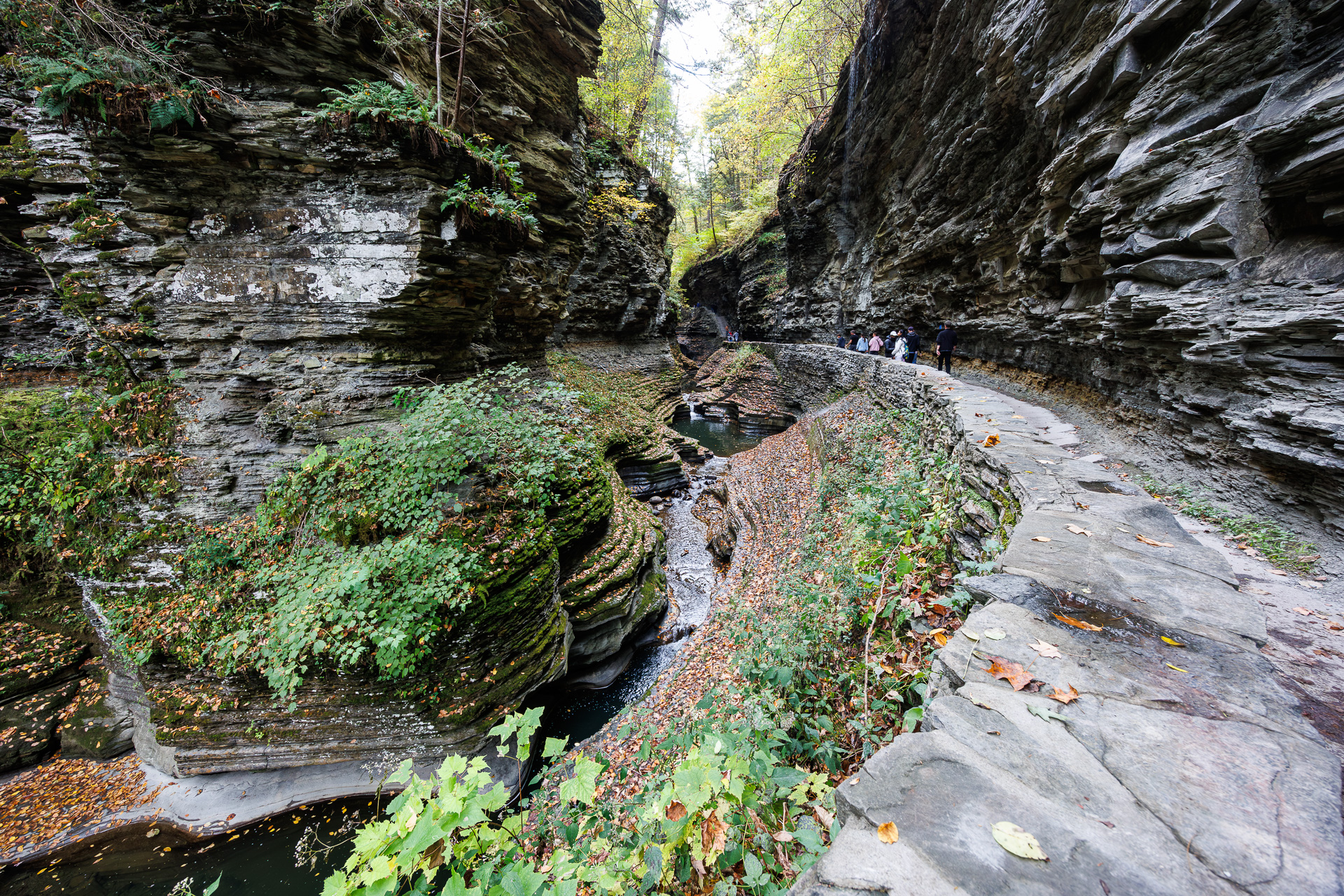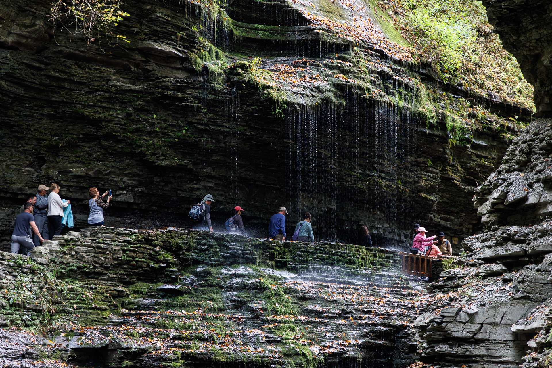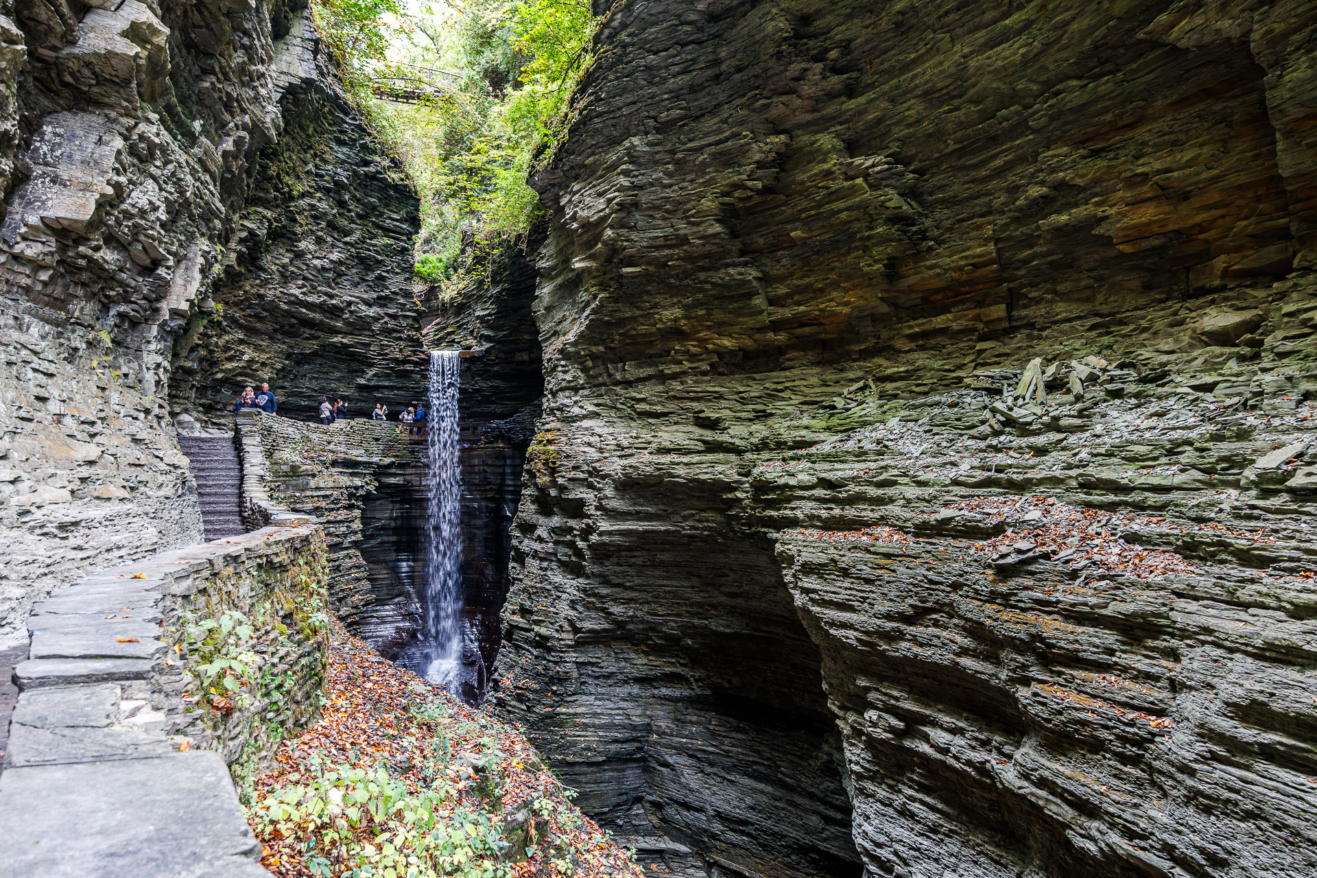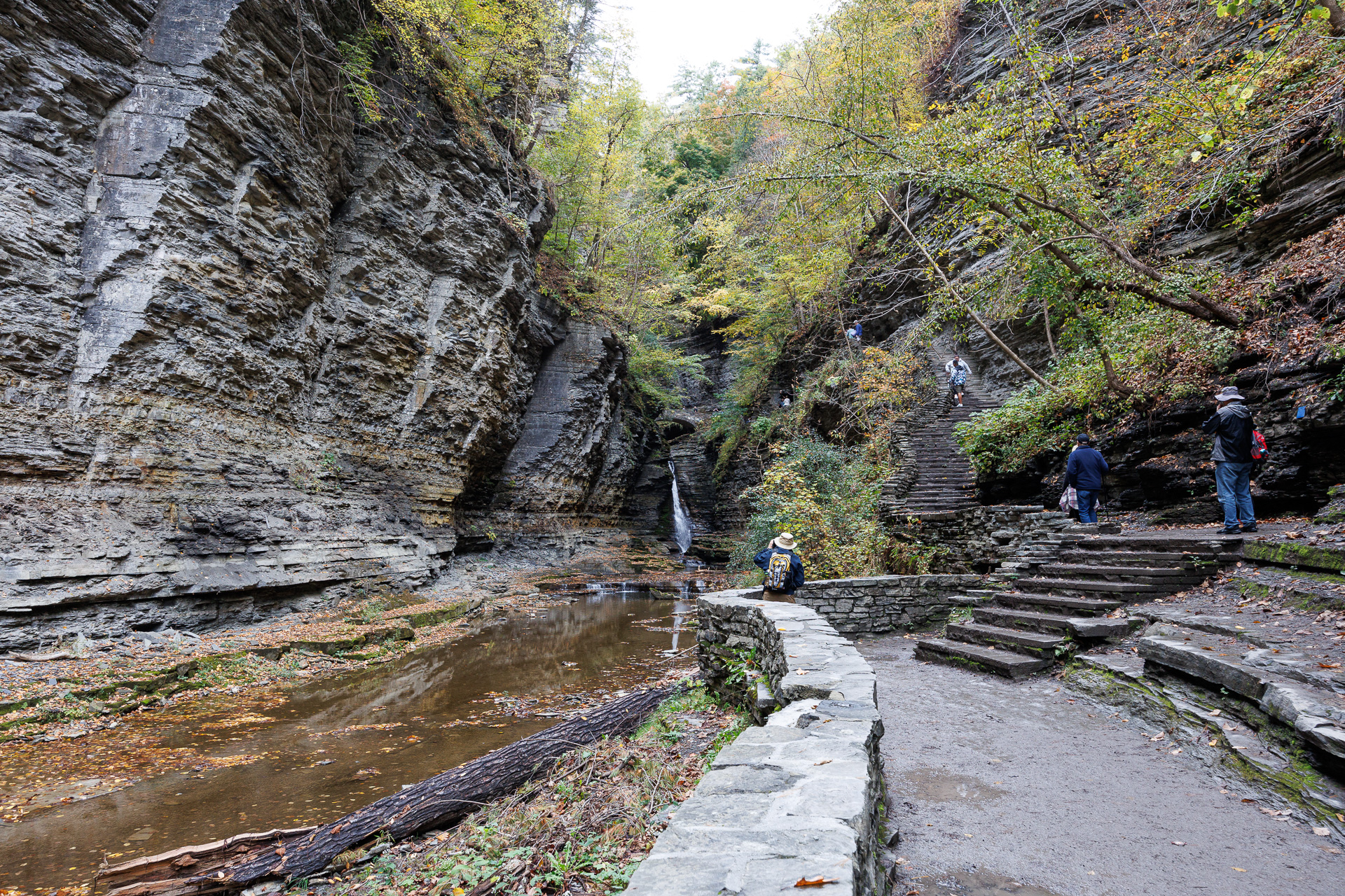 185952 km : Ce matin, nous quittons Corning en direction du Parc de Watkins Glen. Ce parc est parcouru par un défilé long de 3,2 km, jalonné de 19 cascades et encastré entre des falaises de 60 mètres de haut. Il se trouve dans la belle région des Fingers Lakes à la pointe du lac Seneca.