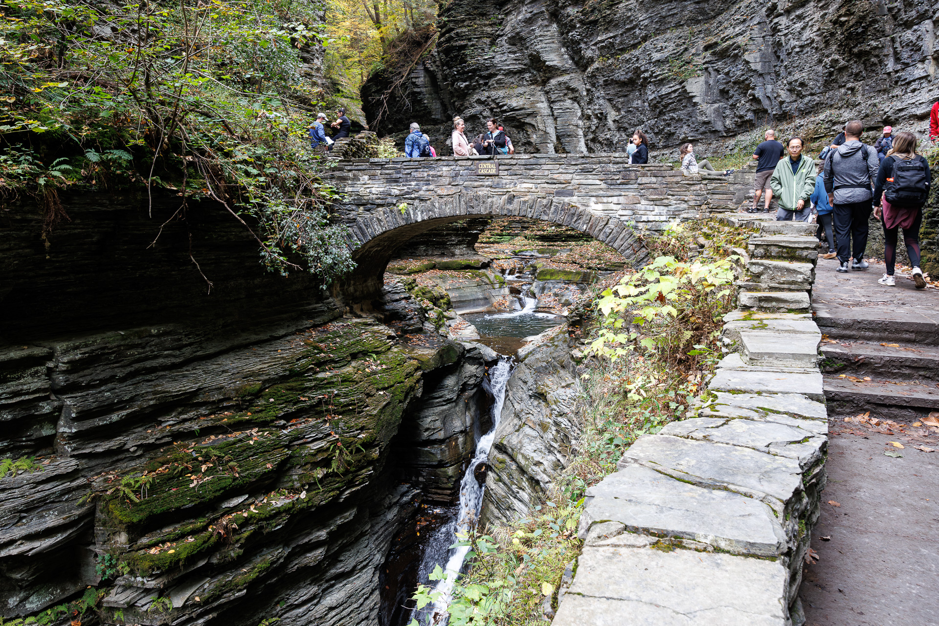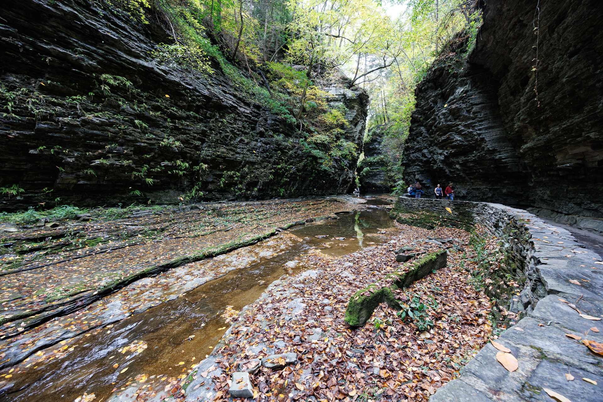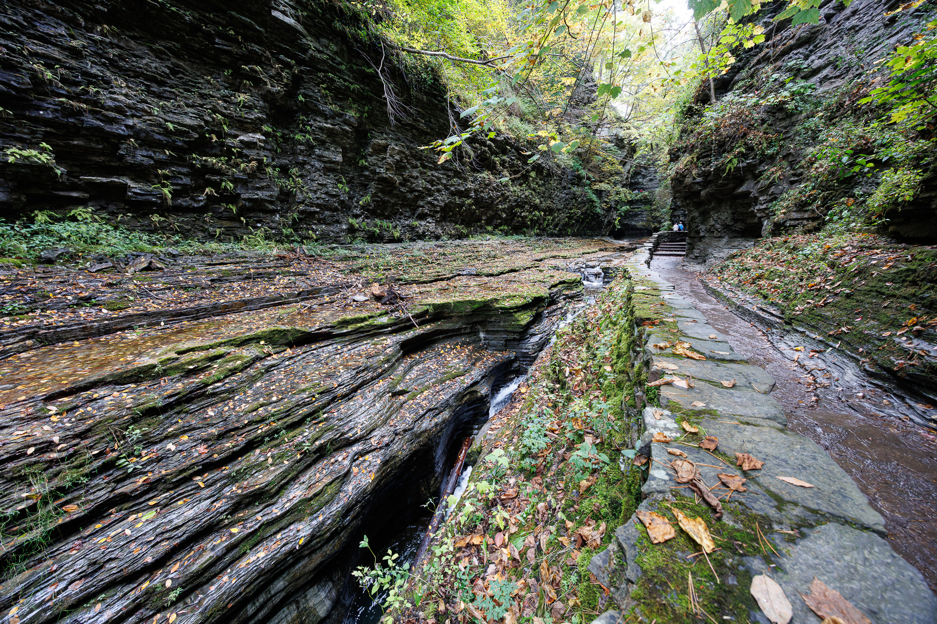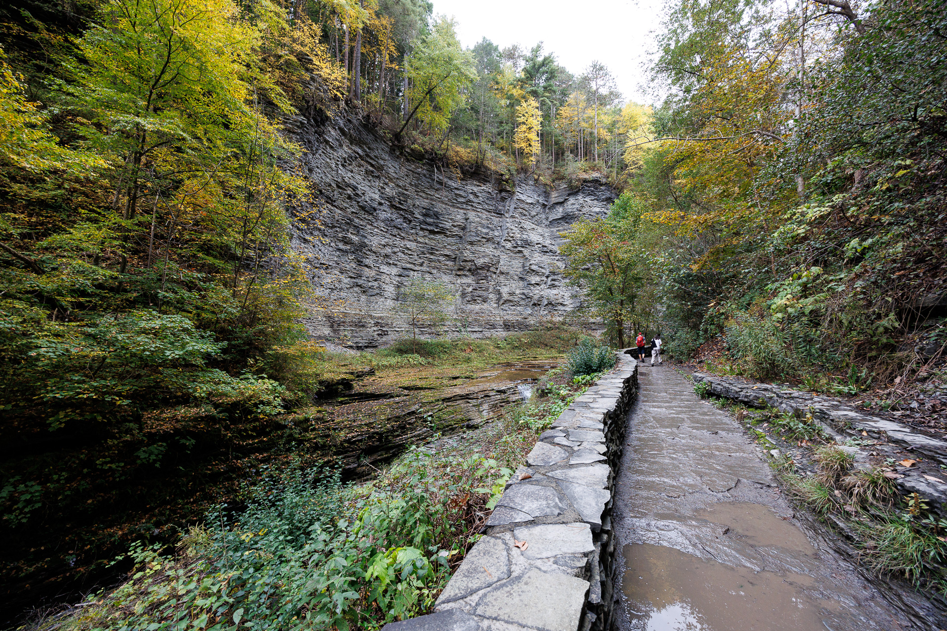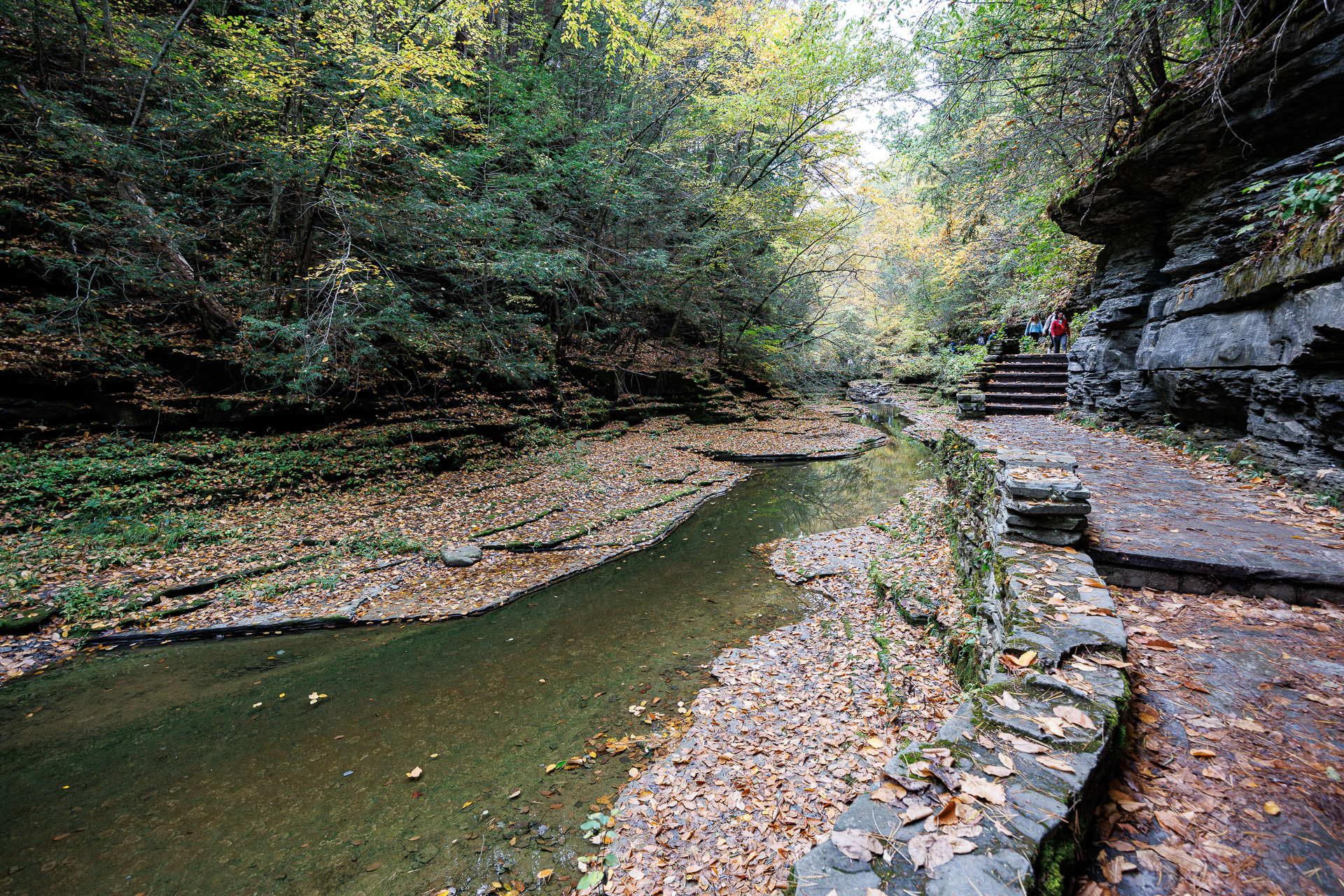 185952 km : Ce matin, nous quittons Corning en direction du Parc de Watkins Glen. Ce parc est parcouru par un défilé long de 3,2 km, jalonné de 19 cascades et encastré entre des falaises de 60 mètres de haut. Il se trouve dans la belle région des Fingers Lakes à la pointe du lac Seneca.