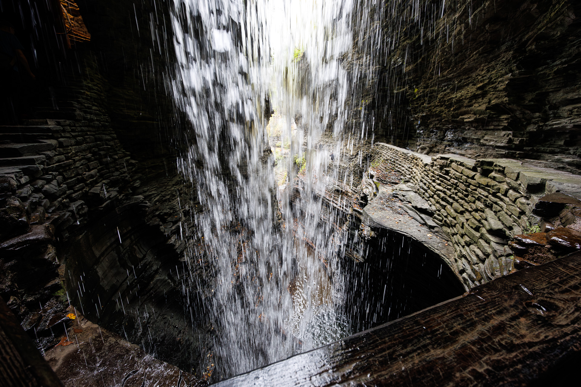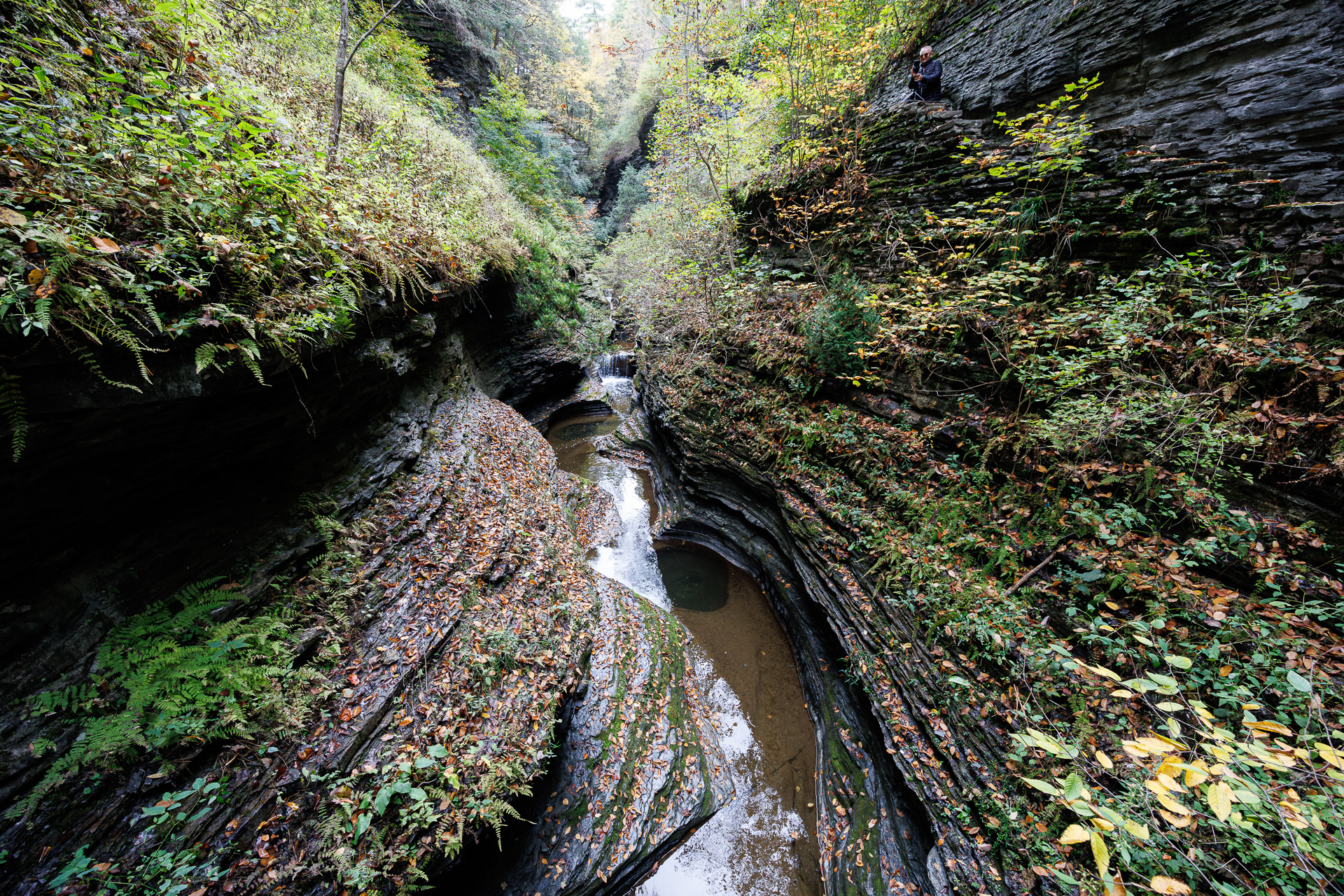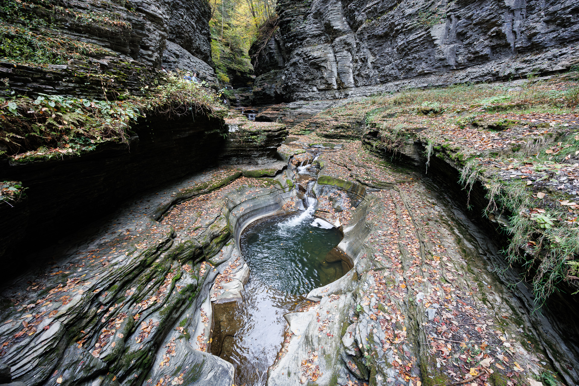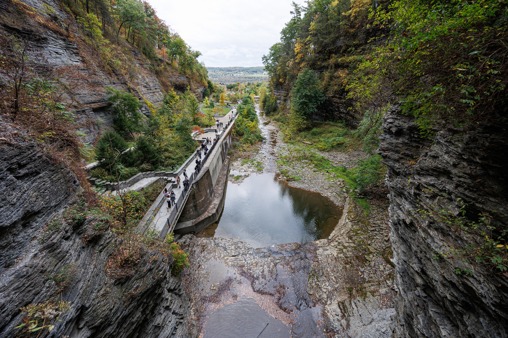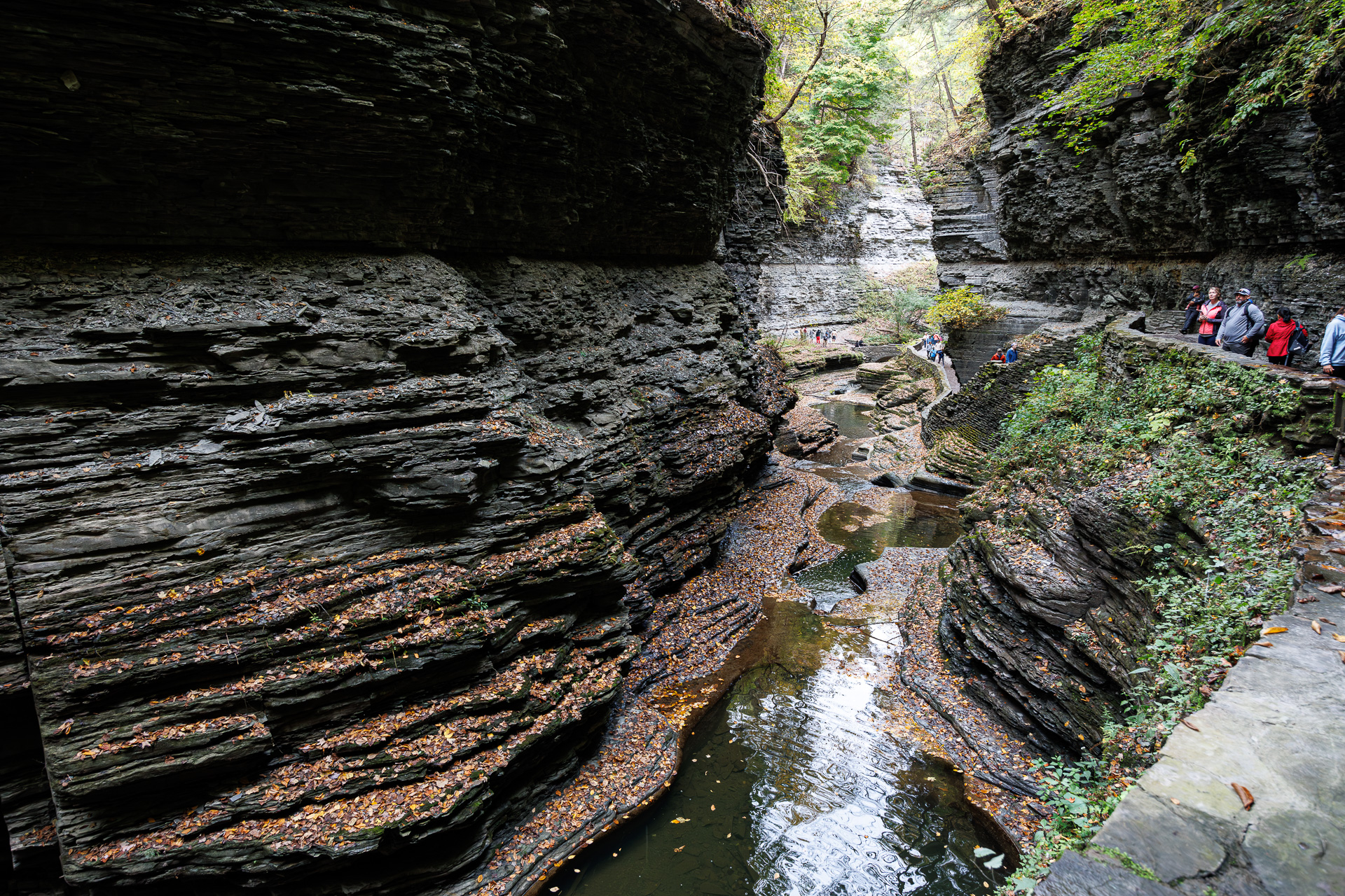 185952 km : Ce matin, nous quittons Corning en direction du Parc de Watkins Glen. Ce parc est parcouru par un défilé long de 3,2 km, jalonné de 19 cascades et encastré entre des falaises de 60 mètres de haut. Il se trouve dans la belle région des Fingers Lakes à la pointe du lac Seneca.