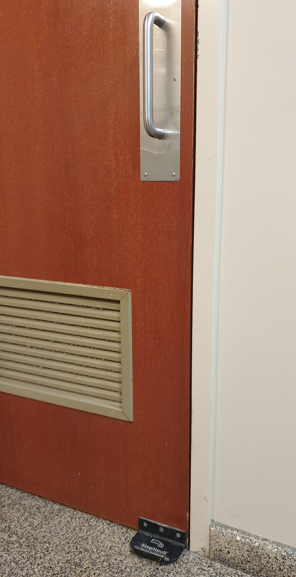 Un système bien pratique pour sortir des toilettes sans avoir besoin de tenir la porte après s’être lavé les mains… pour ceux et celles qui se lavent les mains avant de sortir, bien sûr !