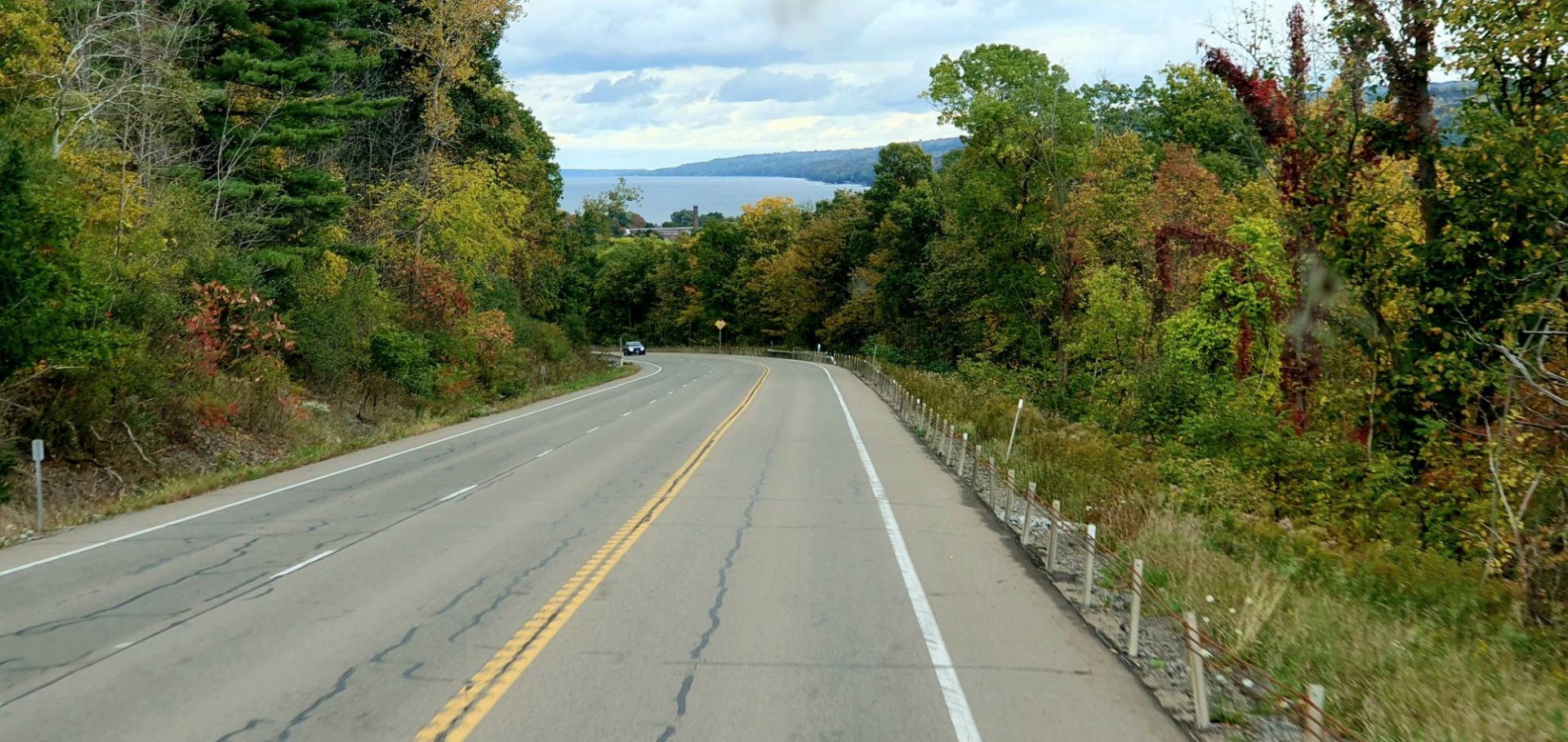Au loin nous apercevons le lac Seneca. Ce soir, nous dormirons au bord du lac.