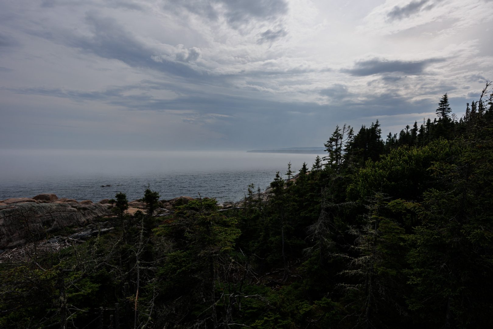182619 km : Ce matin, nous faisons une nouvelle tentative au Centre d’interprétation et d’observation de Cap-de-Bon-Désir. Mince, la brume recouvre entièrement la mer, c’est pire qu’hier. Nous patienterons un peu en ouvrant encore bien grand nos oreilles et nos yeux mais… rien a l’horizon !! (juste des cornes de brume 😉)