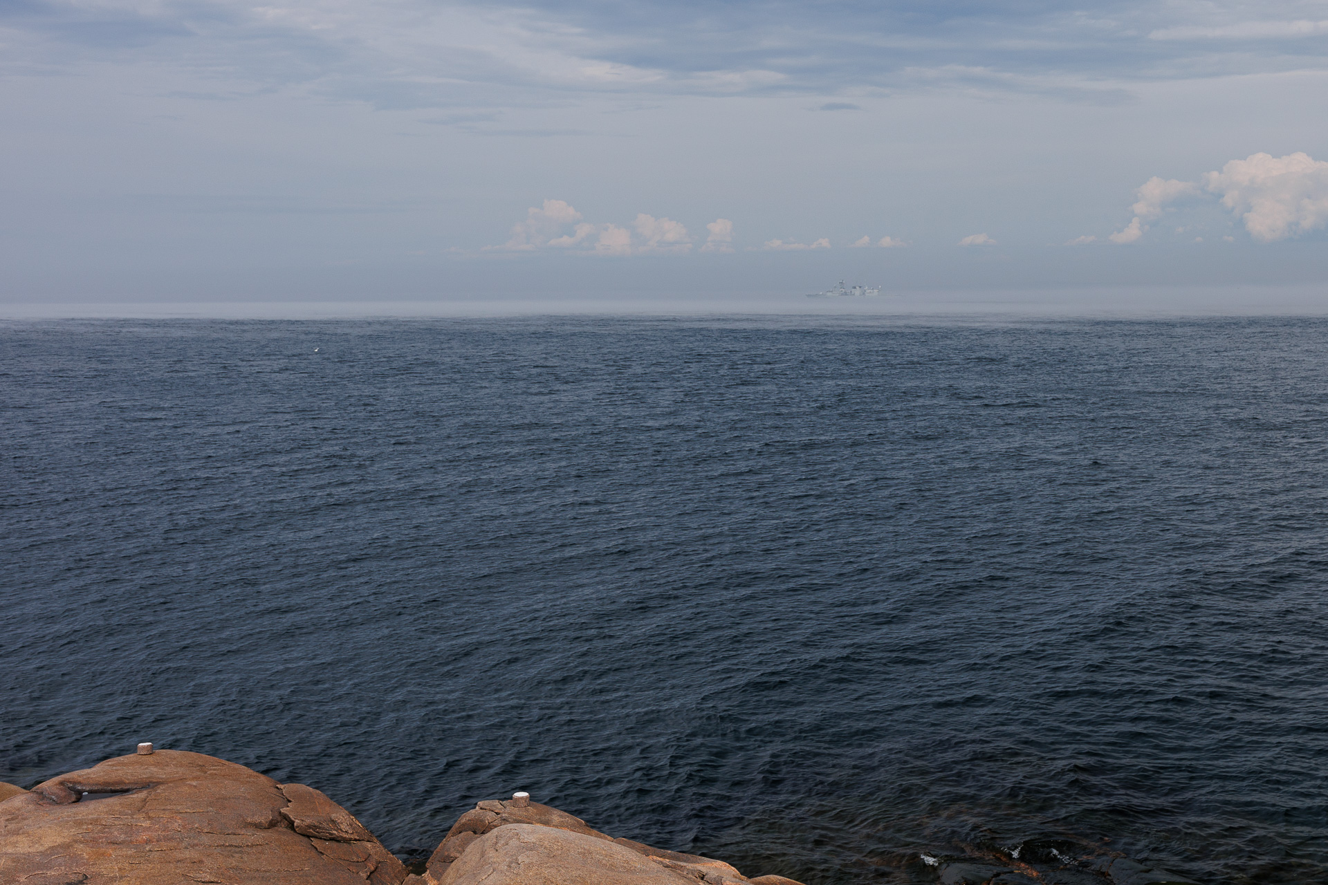 On a ouvert grand les yeux et les oreilles mais, à défaut de voir les baleines 😭, nous avons eu le spectacle des gros bateaux dans la brume et le son de leur corne de brume ! Vous le voyez le bateau ? 🧐