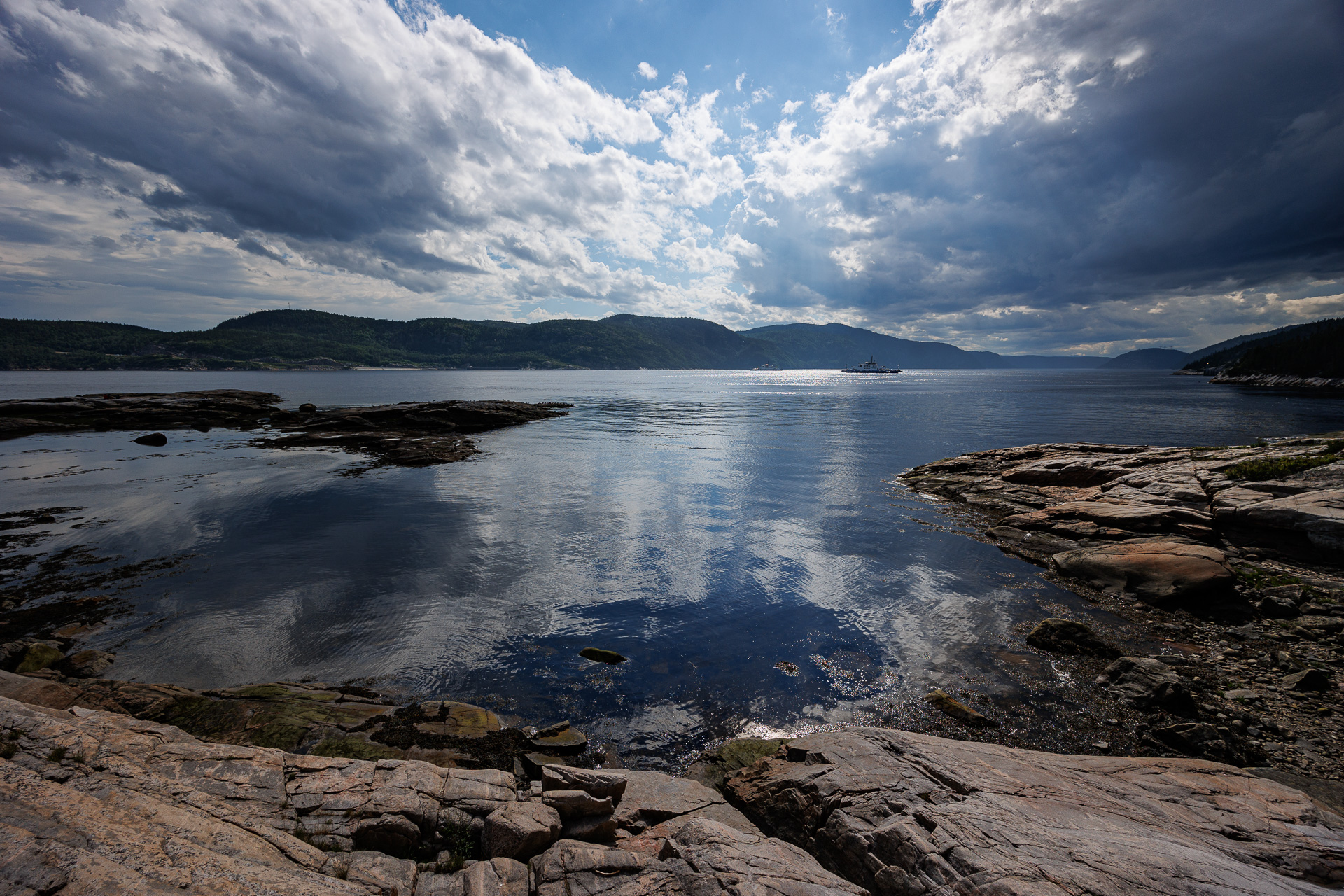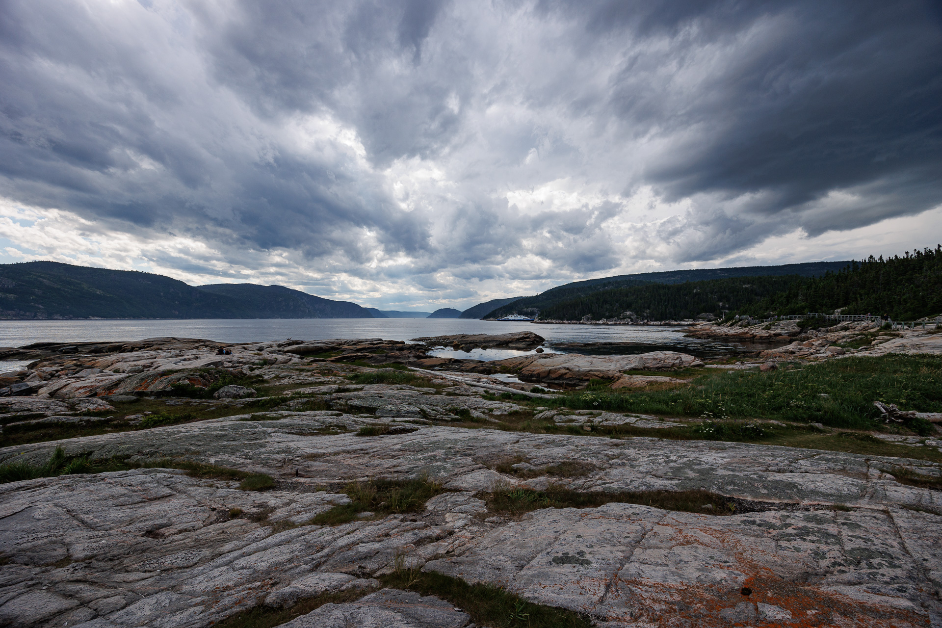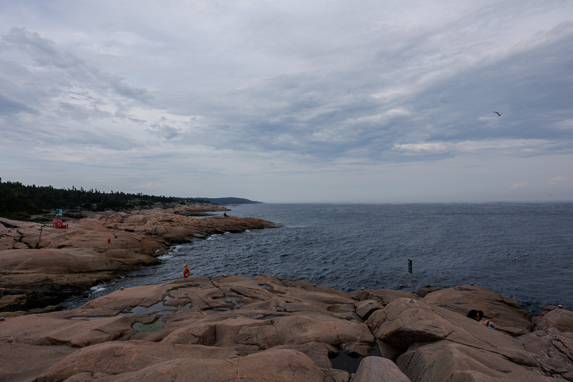 Un petit sentier nous conduit directement sur un promontoire rocheux d’où nous avons un point de vue magnifique sur le Golfe de Saguenay.