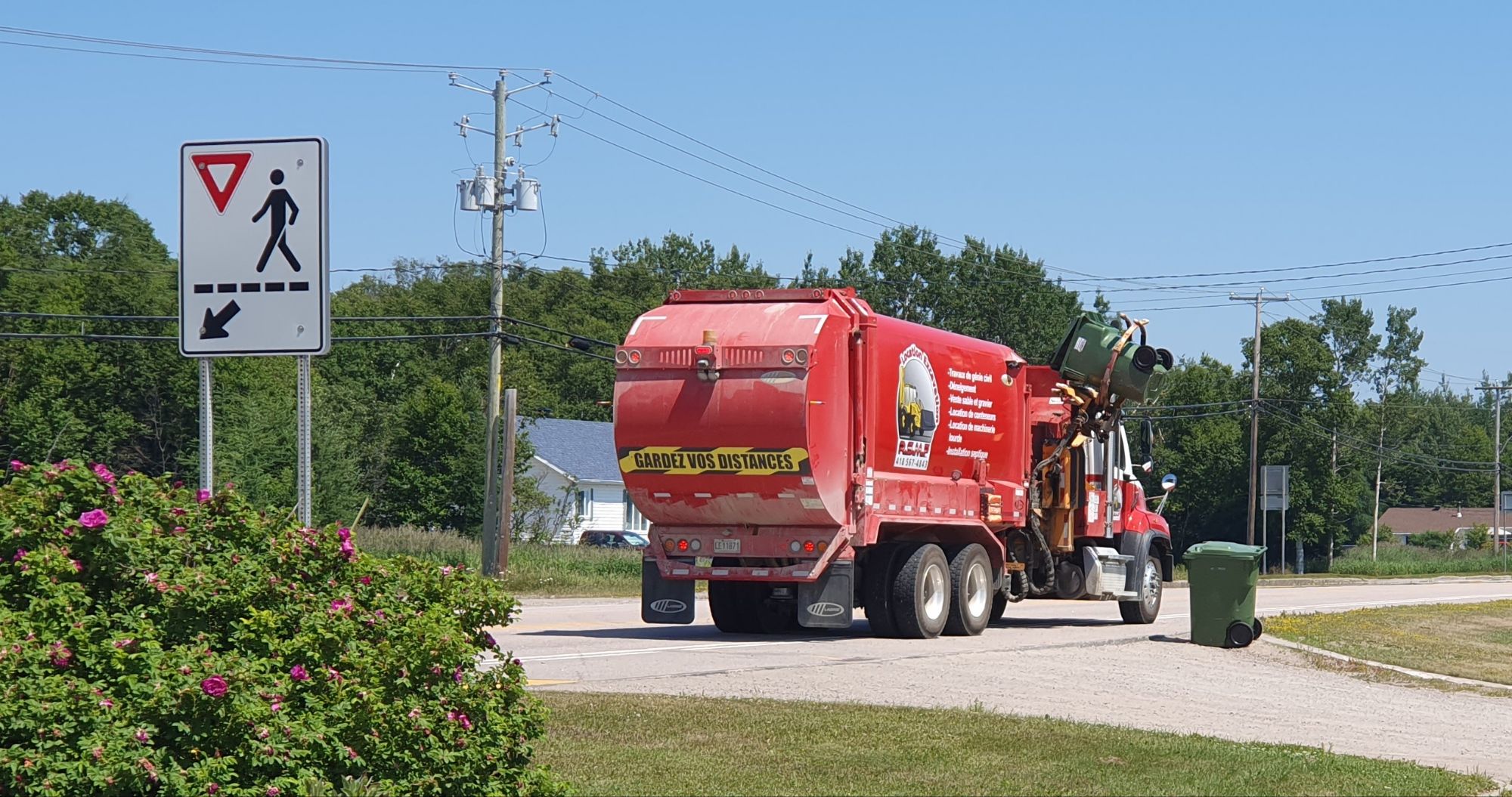 182437 km : Ce matin, nous profitons des équipements locaux pour faire les vidanges et le plein d’eau. Avant de quitter le parking, nous croisons un camion d’éboueurs. Rien d’original apparemment 😜… Et si !! La particularité est que le chauffeur est tout seul à bord de son camion et que c’est la machine qui travaille pour lui 😜 ! Elle prend la poubelle, la vide et la remet en place exactement où il faut… rapidité et efficacité !