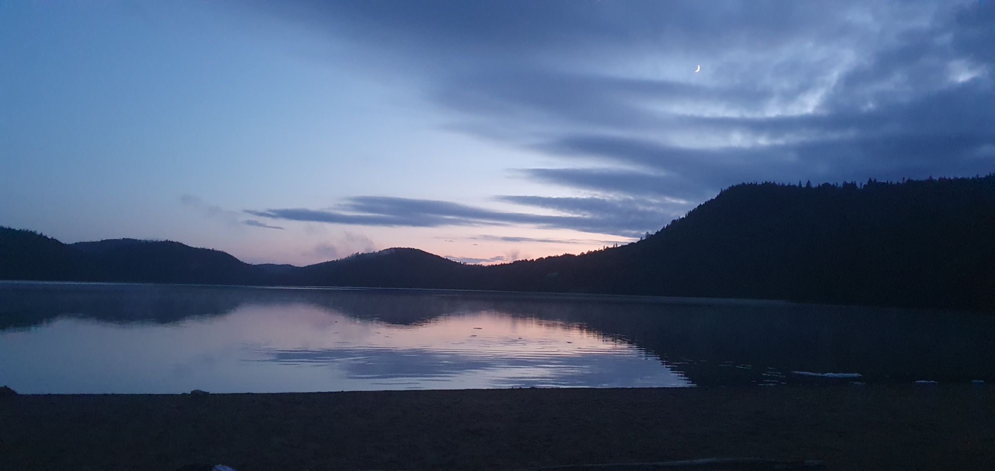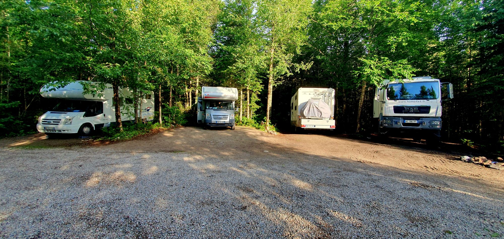 Ce soir, nous nous posons au bord d’un joli petit lac. Nous ne sommes pas seul : un pêcheur canadien et un couple de français avec leurs 2 petites filles. Nous avons à peine le temps de faire connaissance de Charlotte, Florent, Callie et Loïs que nous voyons arriver les 2 camping-cars français de la veille 😁 !