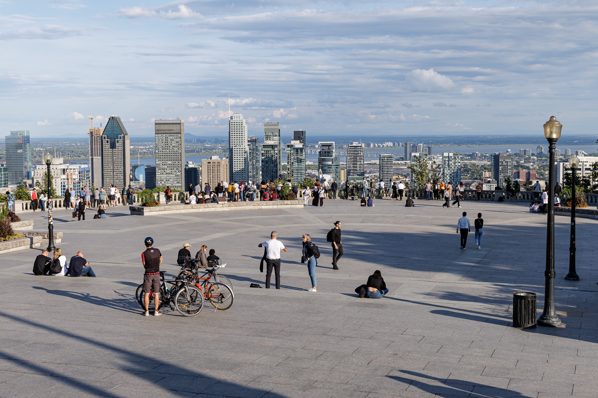 Après une belle marche, nous sommes enfin arrivés au Mont Royal… 200 ha de verdure nous y attendent ! En 1535, lors de son deuxième voyage au Canada, Jacques Cartier l’a nommé ainsi en l’honneur du roi de France François 1er. C’est le Mont Royal qui a inspiré, au 18ème siècle, le nouveau nom de la ville, qui est passé de Ville-Marie à Montréal.