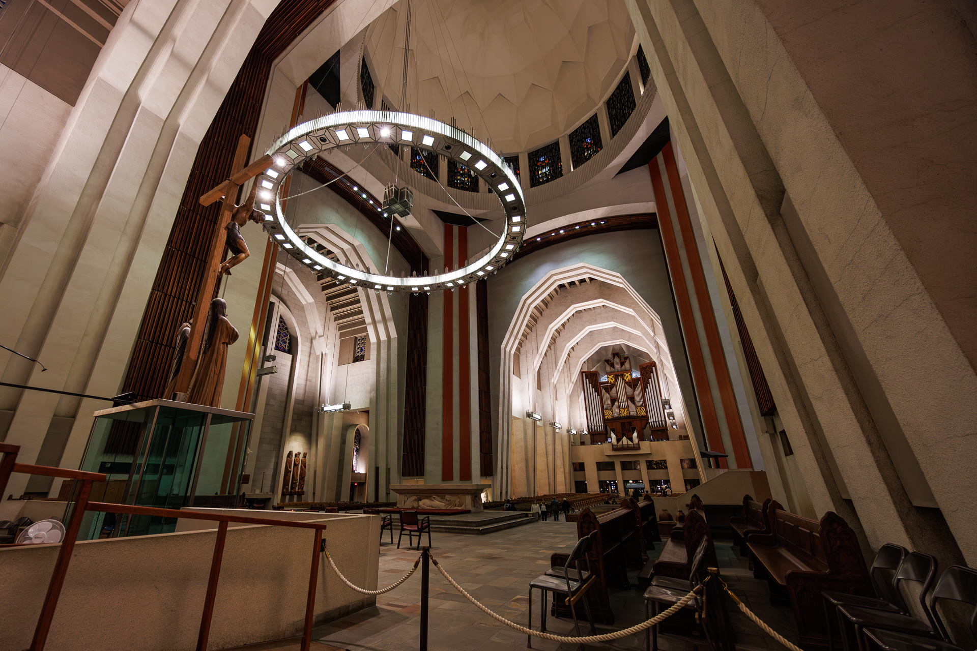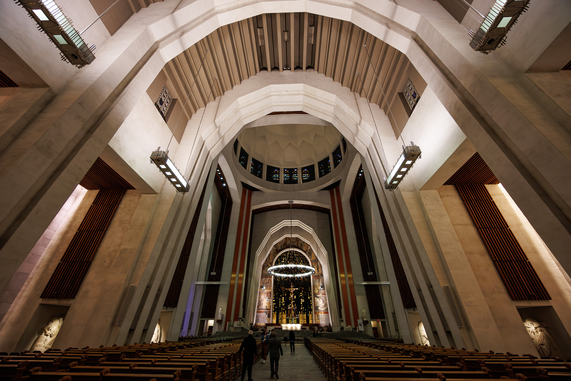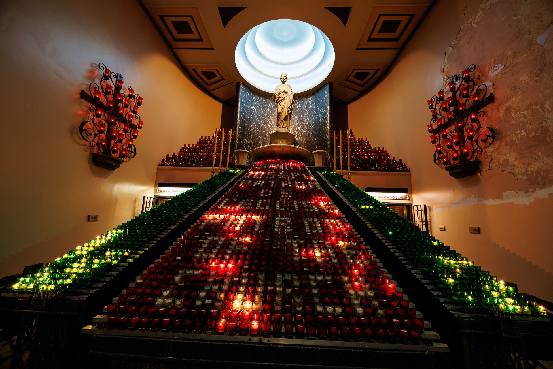 Le soleil étant couché, nous pénétrons dans l’église. L’Oratoire Saint-Joseph-du-Mont-Royal est le lieu de pèlerinage le plus important dédié à saint Joseph à travers le monde. Il attire environ deux millions de visiteurs chaque année, provenant de toutes les parties du monde. C’est aussi la plus grande église du Canada.