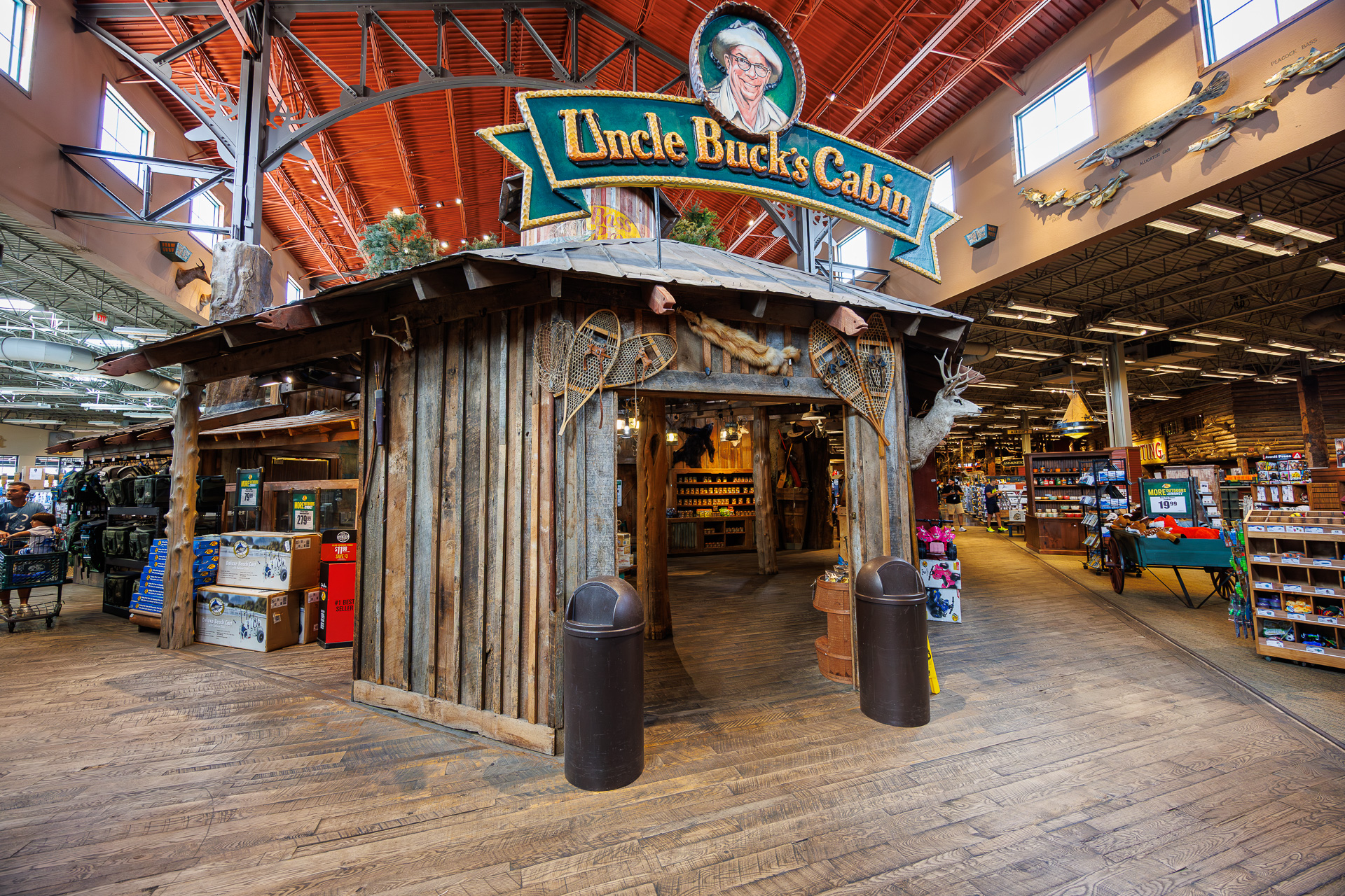 Dans un décor d’expositions d’animaux sauvages et de scènes de plein air, les magasins proposent une vaste sélection d’équipements (matériel de chasse, pêche, sports d’eau et activités en plein air ainsi qu’une grande variété de vêtements pour hommes, femmes et enfants)…