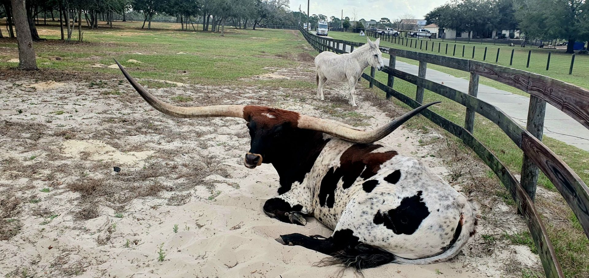 193175 km : Avant de prendre la route ce matin en direction du Wakulla Springs State Park, nous allons salué ce bel animal aux cornes impressionnantes 😳 ! Il s’agit d’un Texas Longhorn… Jolie bête, n’est-ce pas 😜 ?