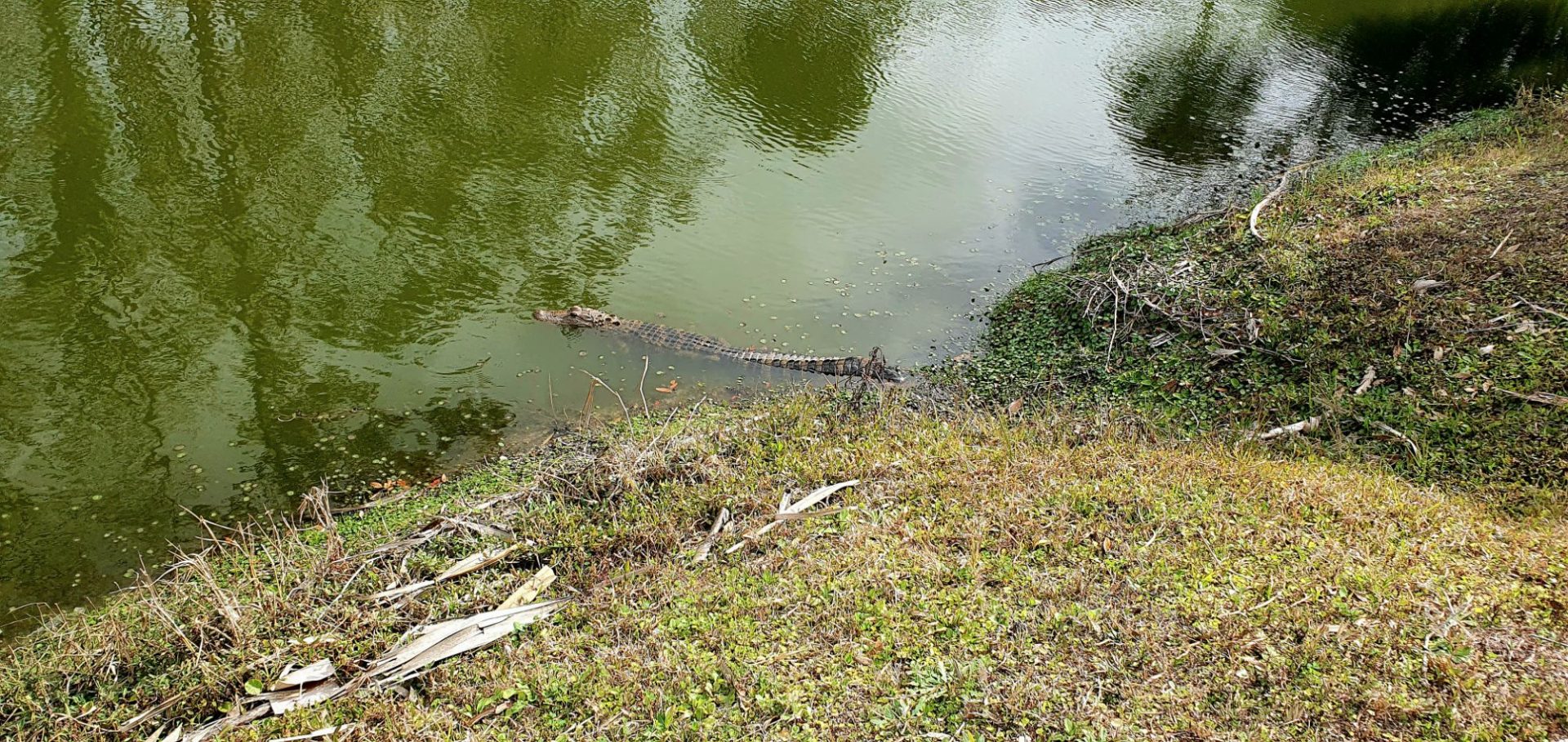 Nous profitons d’une dump station (station de vidange) sur la route pour faire nos vidanges… un sympathique copain nous tiendra compagnie dans l’étang juste à côté 😳 !