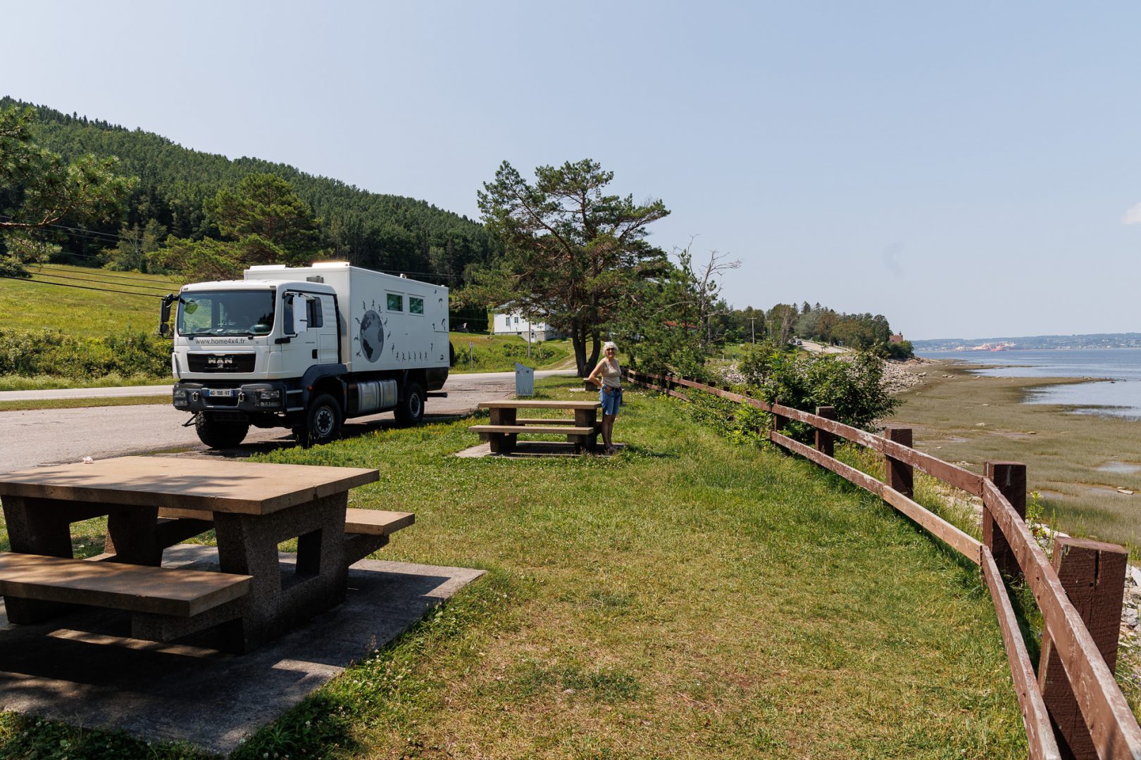 Nous nous dirigeons ensuite vers notre bivouac québécois du soir à l’Anse-aux-Foulons. La circulation n’est plus la même…