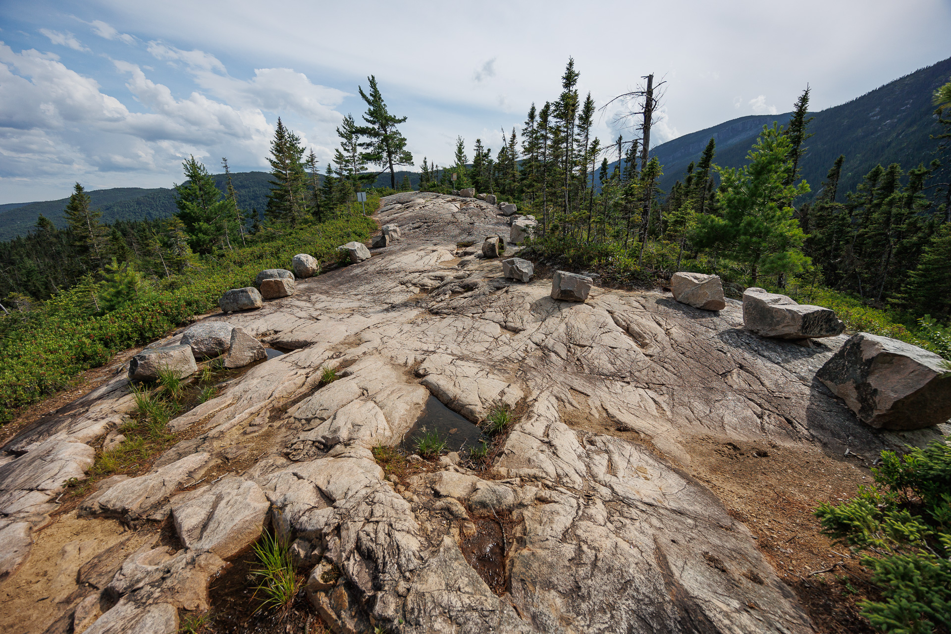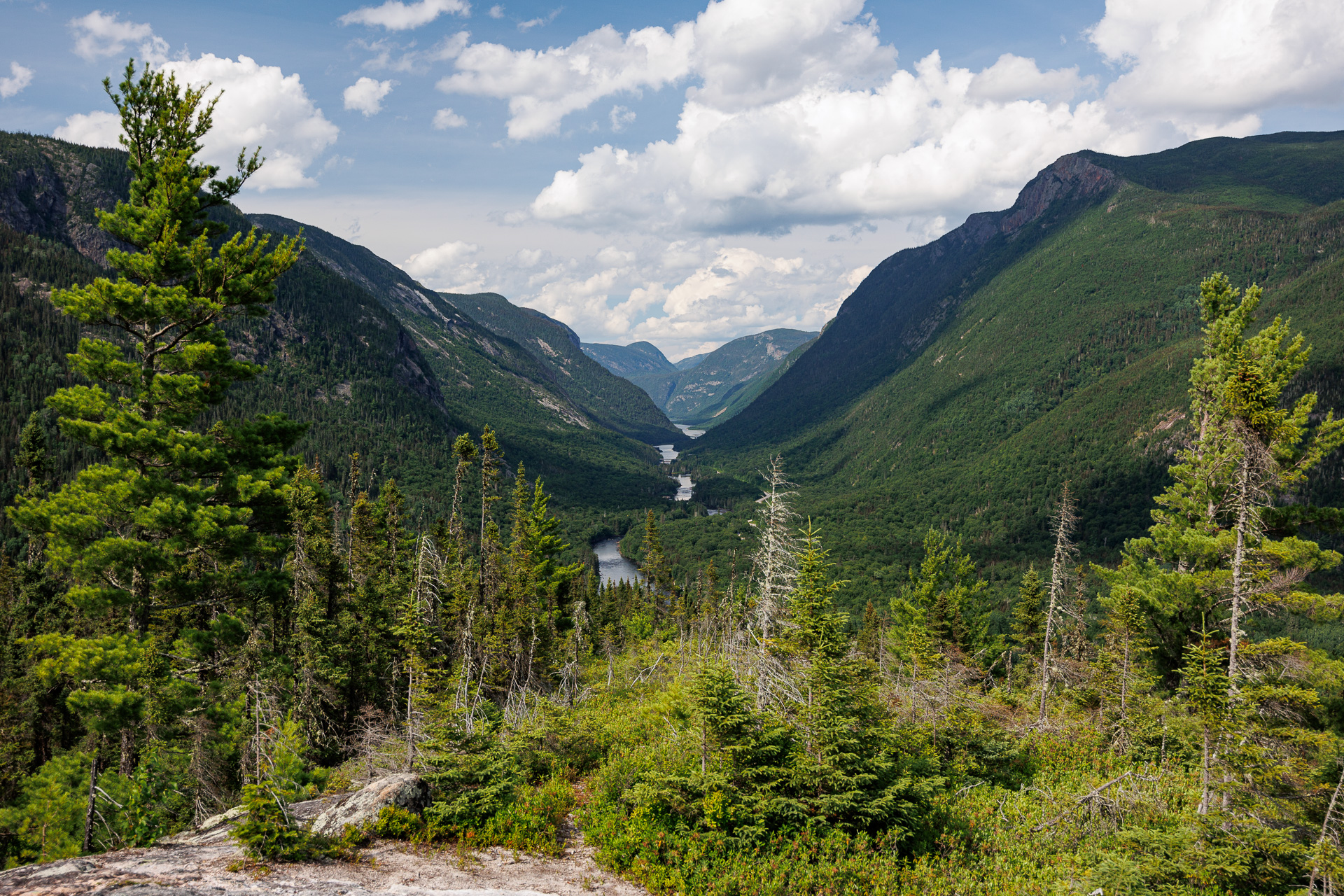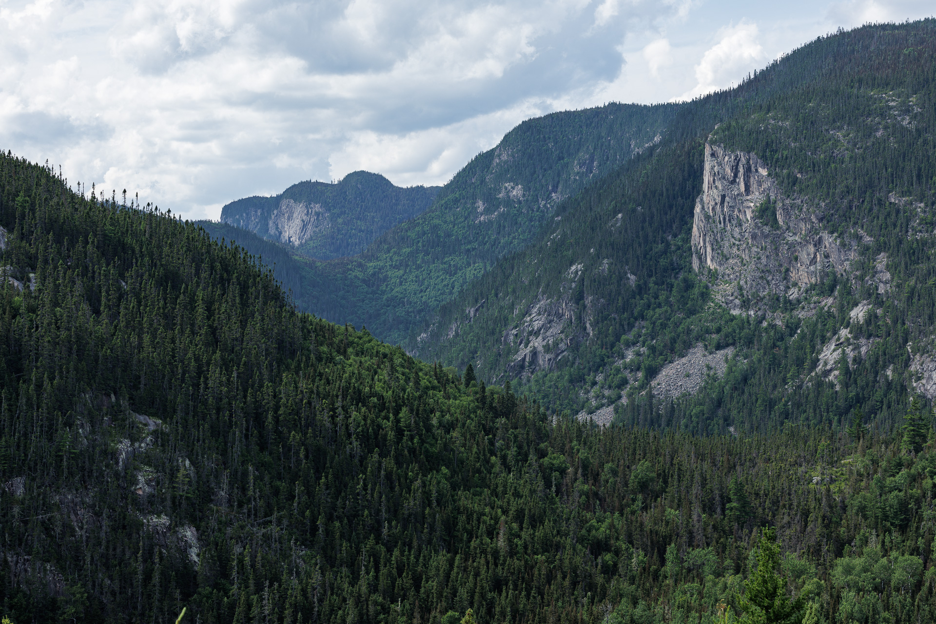 Nous sommes dans les Laurentides, une des plus anciennes chaînes de montagnes de la planète. Il y a des millions d’années, leur hauteur était comparable à celle de l’Himalya ! Sous l’effet répèté des mouvements de l’écorce terrestre, le sol rocheux s’est fracture entraînant l’apparition de nombreuses failles. Au fil du temps, ces failles ont été soumises à l’érosion par l’eau, la glace et le vent.