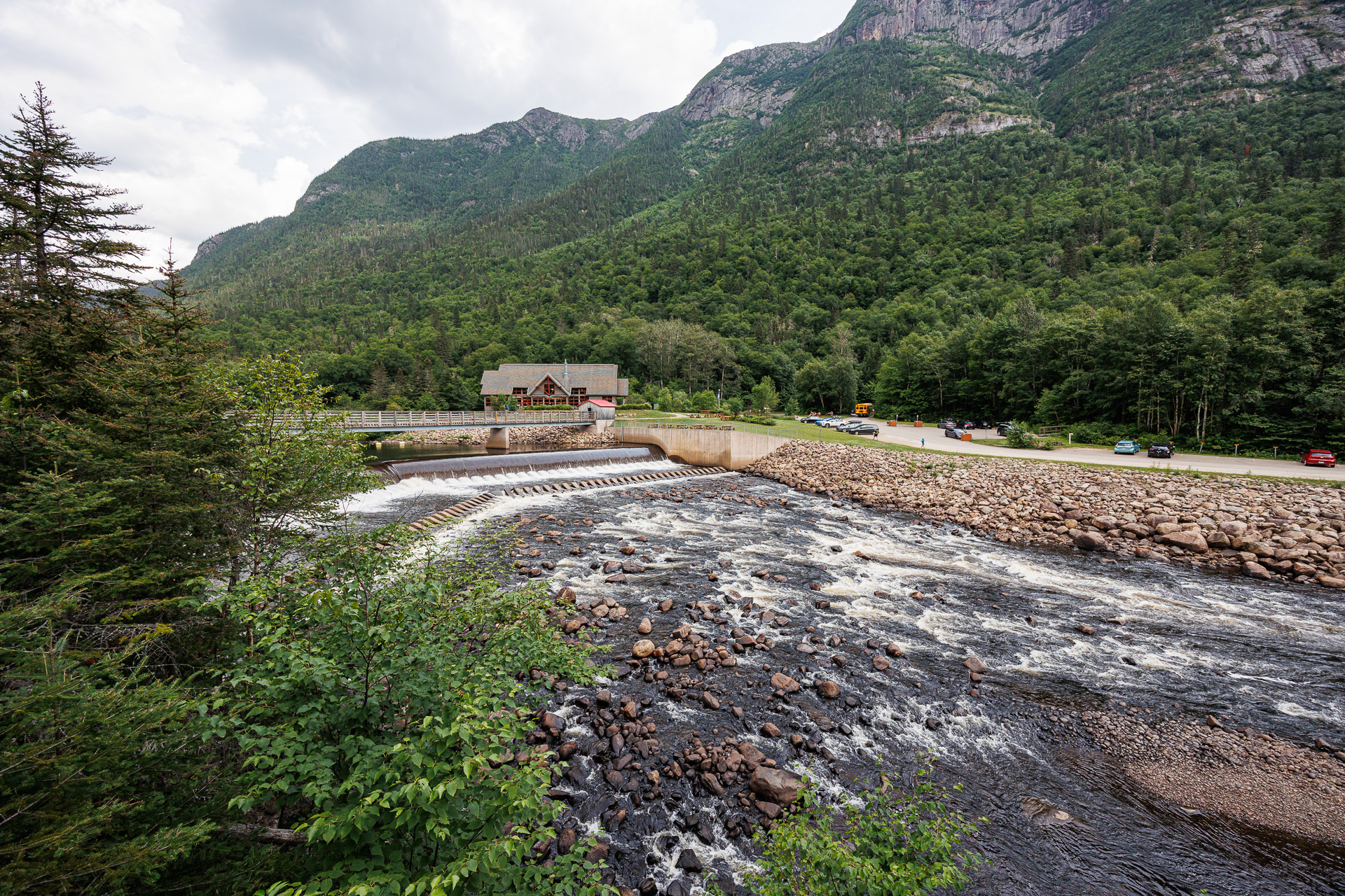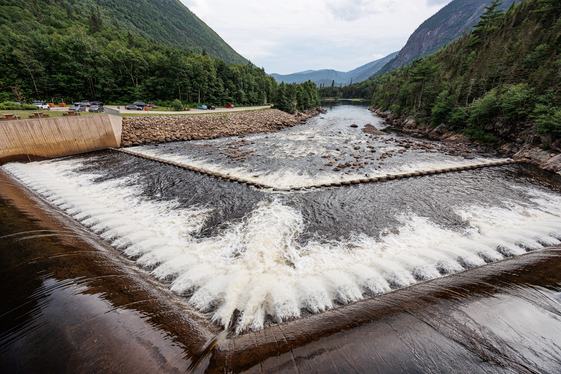 Notre balade s’achève au pied du barrage des anciens draveurs. Lieu où les billots de bois étaient jetés dans la rivière pour rejoindre la pulperie.