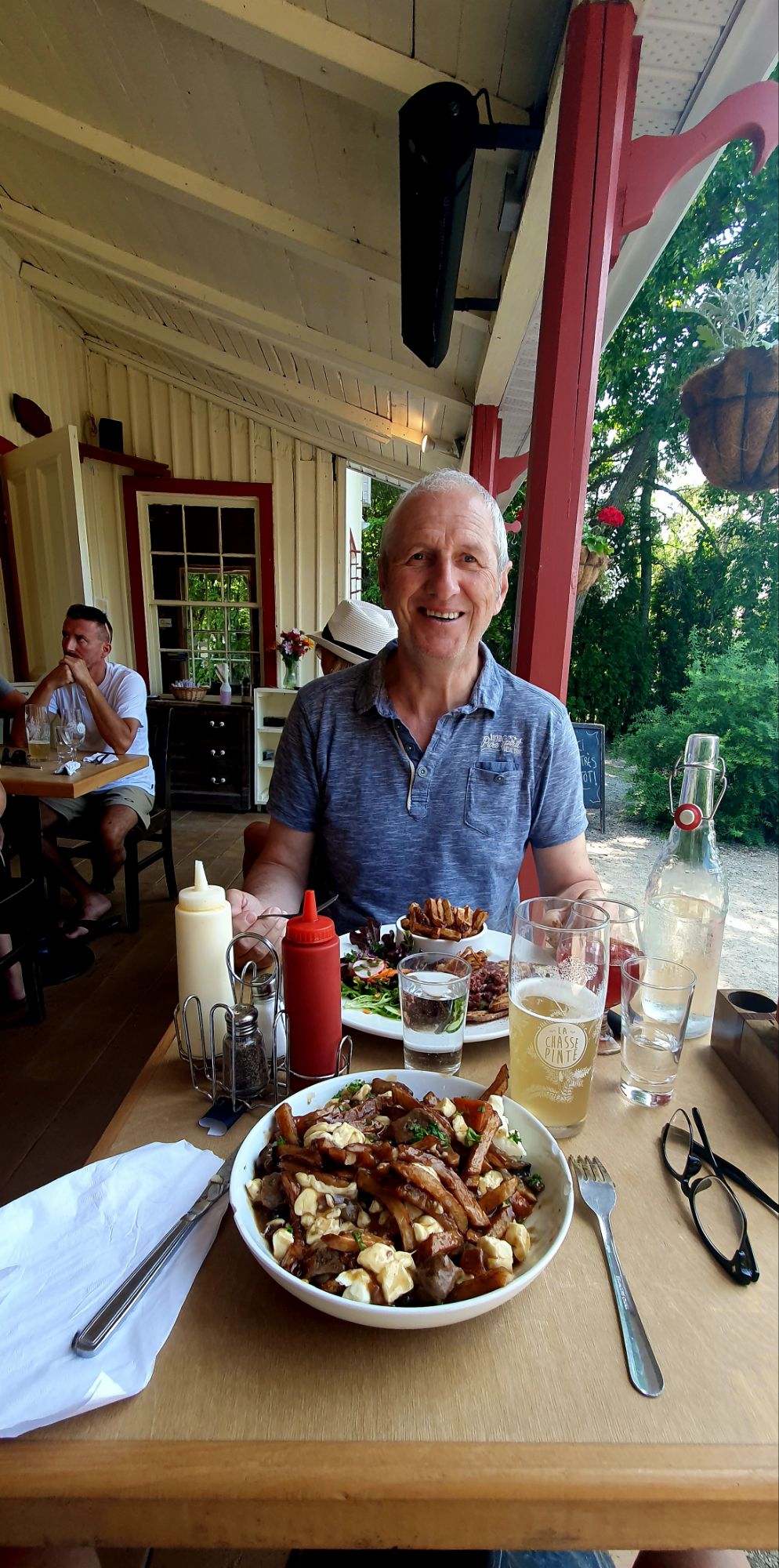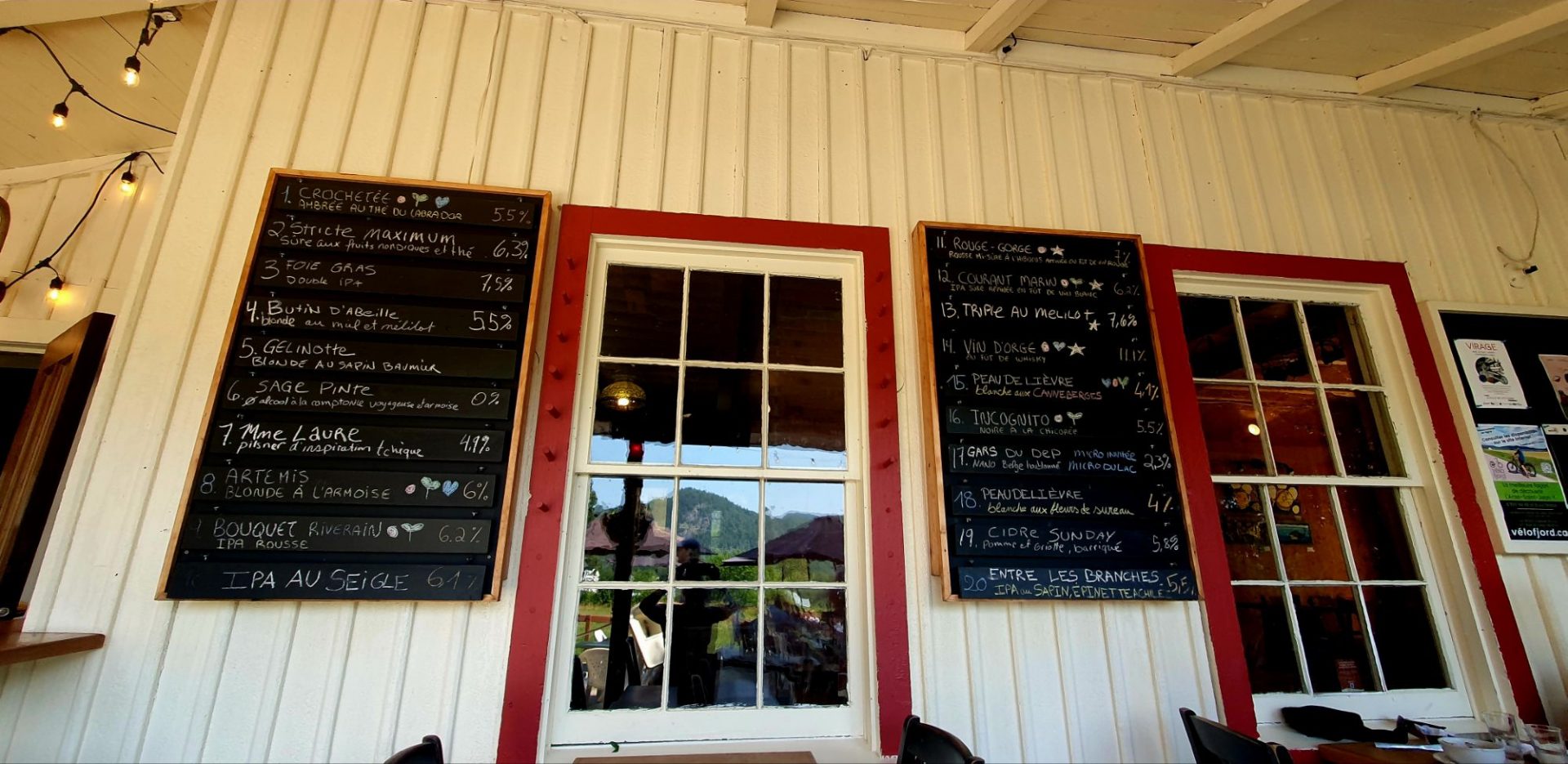 183197 km : Après une nuit bercée par les 2 beaux spectacles que nous avions vus, nous quittons Saguenay en direction de l’Anse-St-Jean. Nous ferons une halte au bistro-brasserie « la Chasse-Pinte », vivement conseillé par notre guide touristique… les bons conseils sont toujours à suivre 😂😜 !