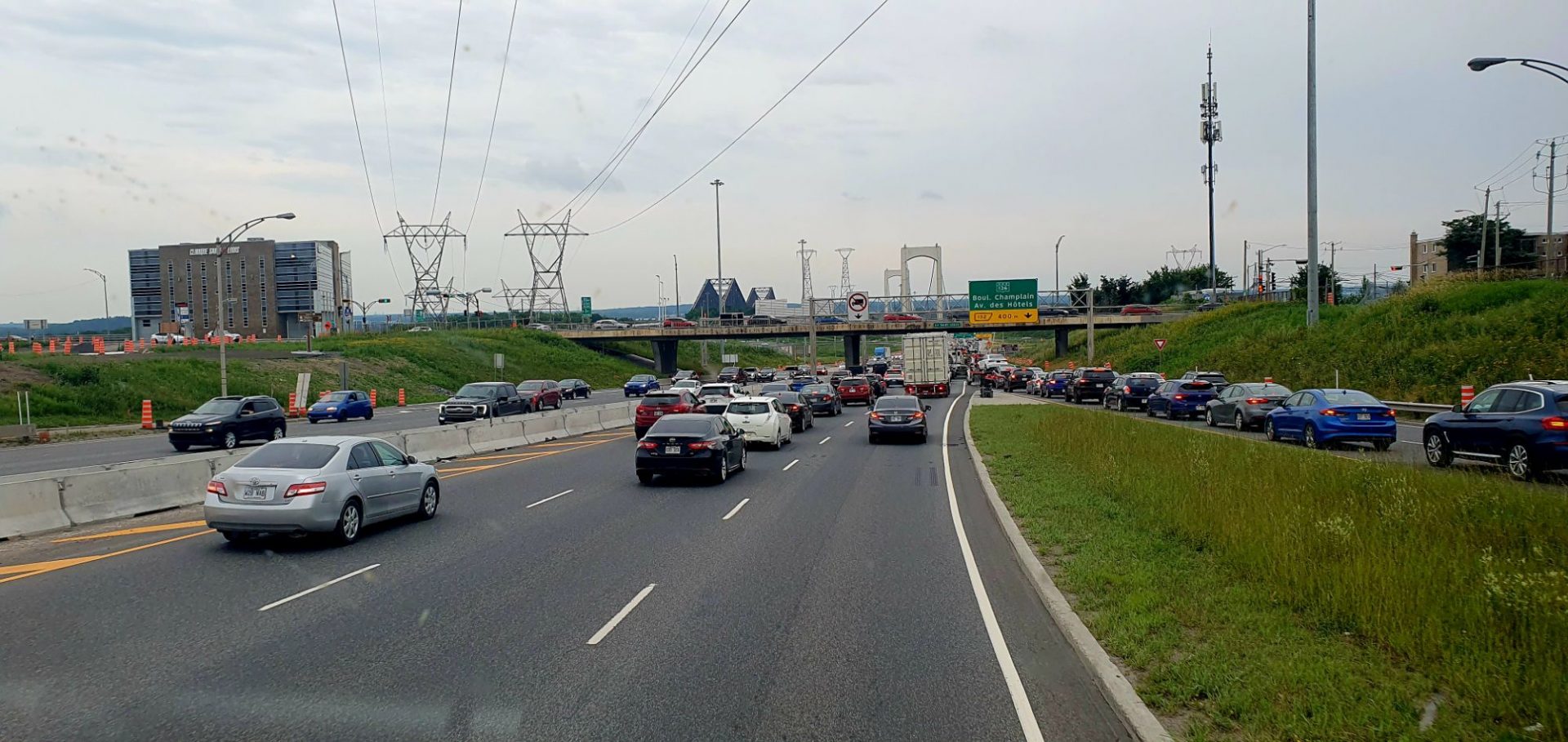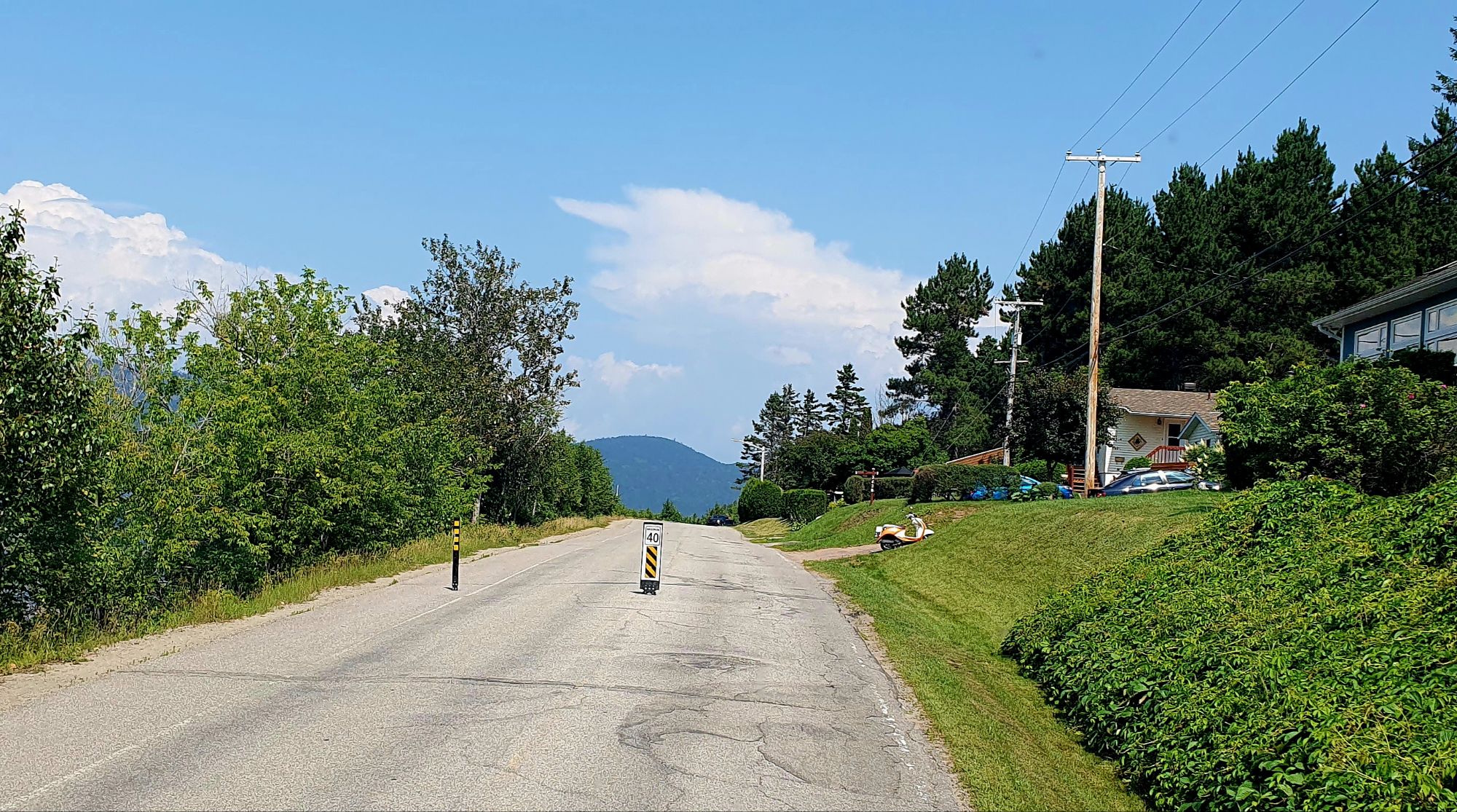 Une façon efficace d’obliger les automobilistes à ralentir aux passages-piétons… on rétrécit beaucoup la voie de circulation avec des obstacles flexibles mais assez hauts 😜 En camion, cela passe tout juste. Il y en a parfois 3 pour ralentir les deux sens de circulation.