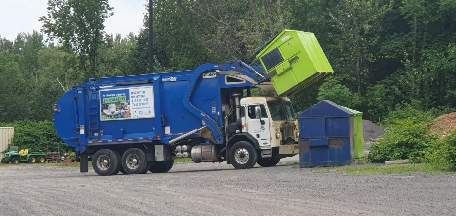 Juste avant de quitter le parking, nous  découvrons une autre façon de vider les containers-poubelles… facile et rapide 😜 !
