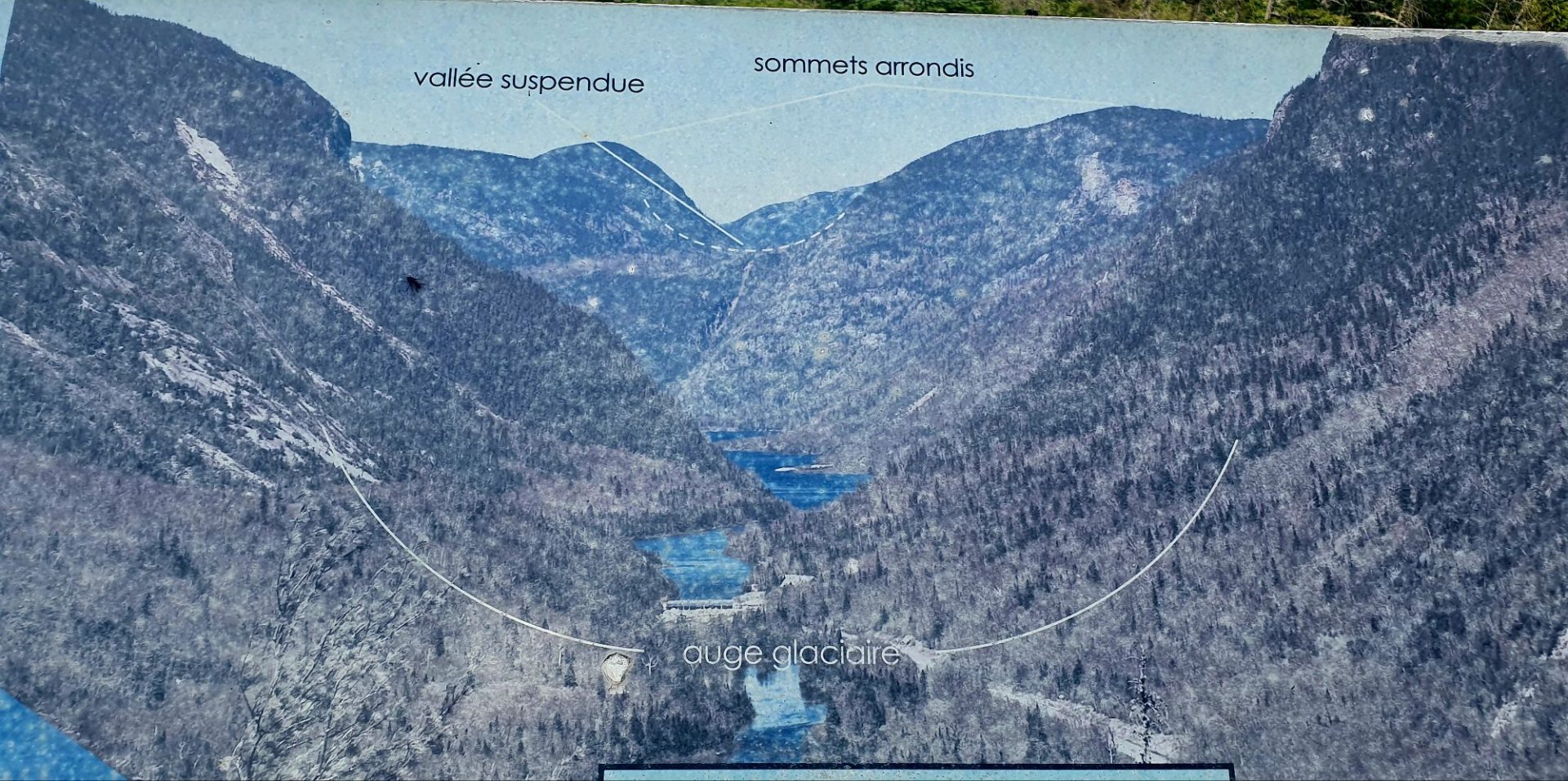 Cette affiche nous permet de situer la vallée suspendue locale, vestige d’un petit glacier.