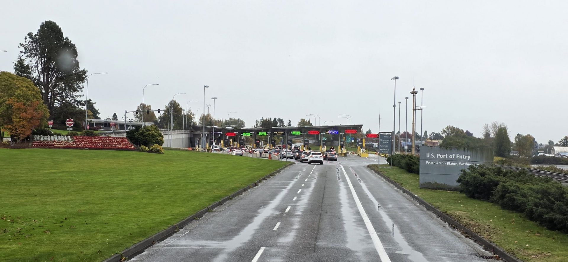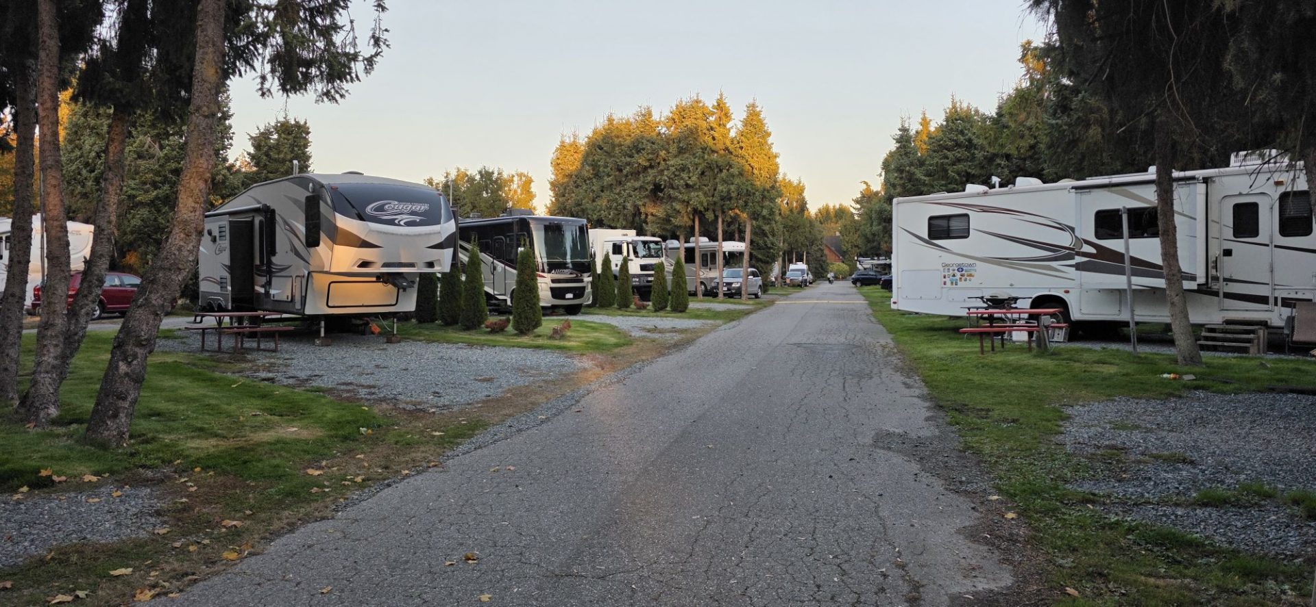 216441 km : Nous nous dirigeons ce matin vers le Camping Peace Arch RV Park juste avant la frontière américaine. Nous y sommes accueillis par des résidents un peu effrayants mais finalement… totalement inoffensifs 🤣 !