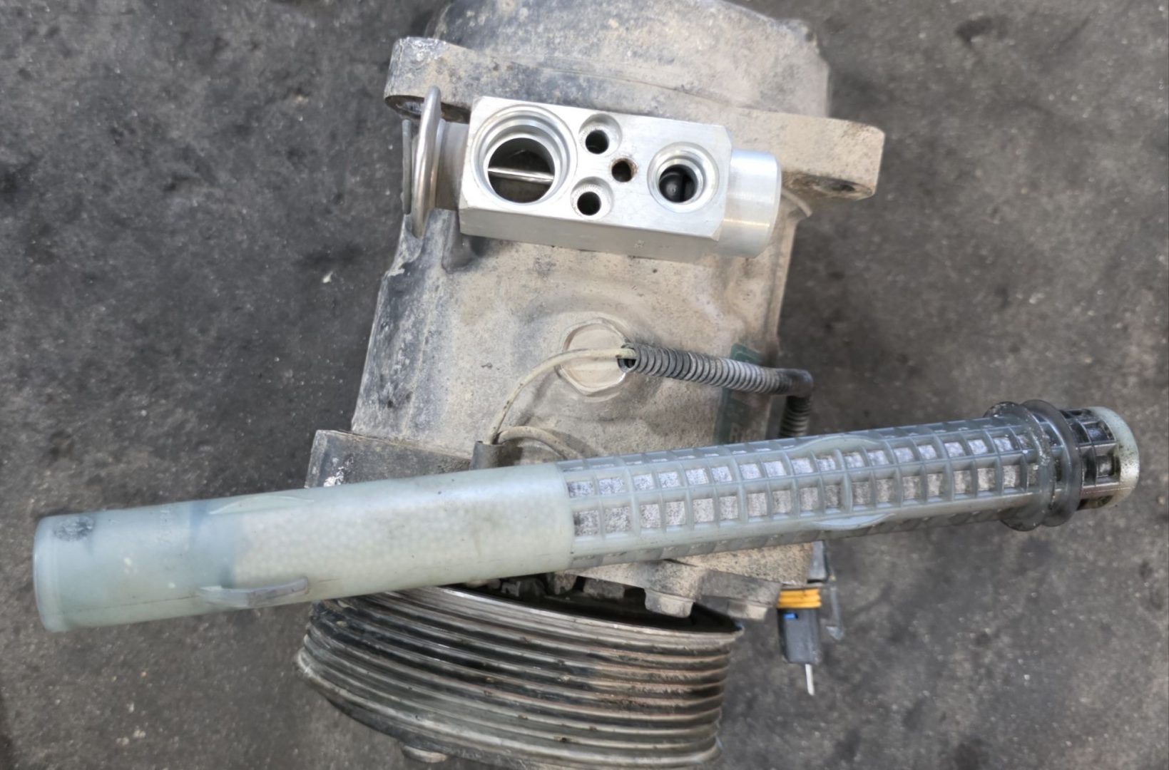 Retour d’expérience : J’aurais dû m’interroger sur la fréquence des changements de la courroie accessoires qui entraîne la climatisation. Devoir la remplacer tous les 2 ou 3 ans était bien le signe d’un dysfonctionnement. La libre rotation de la poulie de renvoi était aisée à vérifier lors du changement de courroie et cela a bien été réalisé à chaque fois. La rotation sans résistance excessive du compresseur de climatisation est plus difficile à appréhender, surtout qu’à l’arrêt la poulie en sortie de compresseur n’est pas embrayée. J’aurais dû, lors des recharges du circuit de climatisation, profiter du vidage du circuit pour démonter le filtre du condenseur et regarder son état. Cela m’aurait permis de voir les multiples paillettes de métal que l’on y a trouvées. J’aurais économisé des courroies et un dépannage pas facile au Canada en faisant réalisé un remplacement préventif du compresseur. Dorénavant je sais 😉
