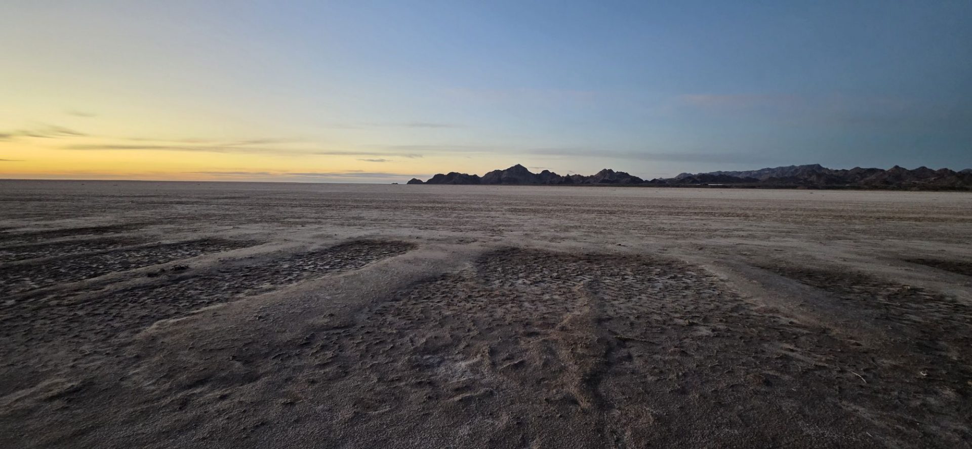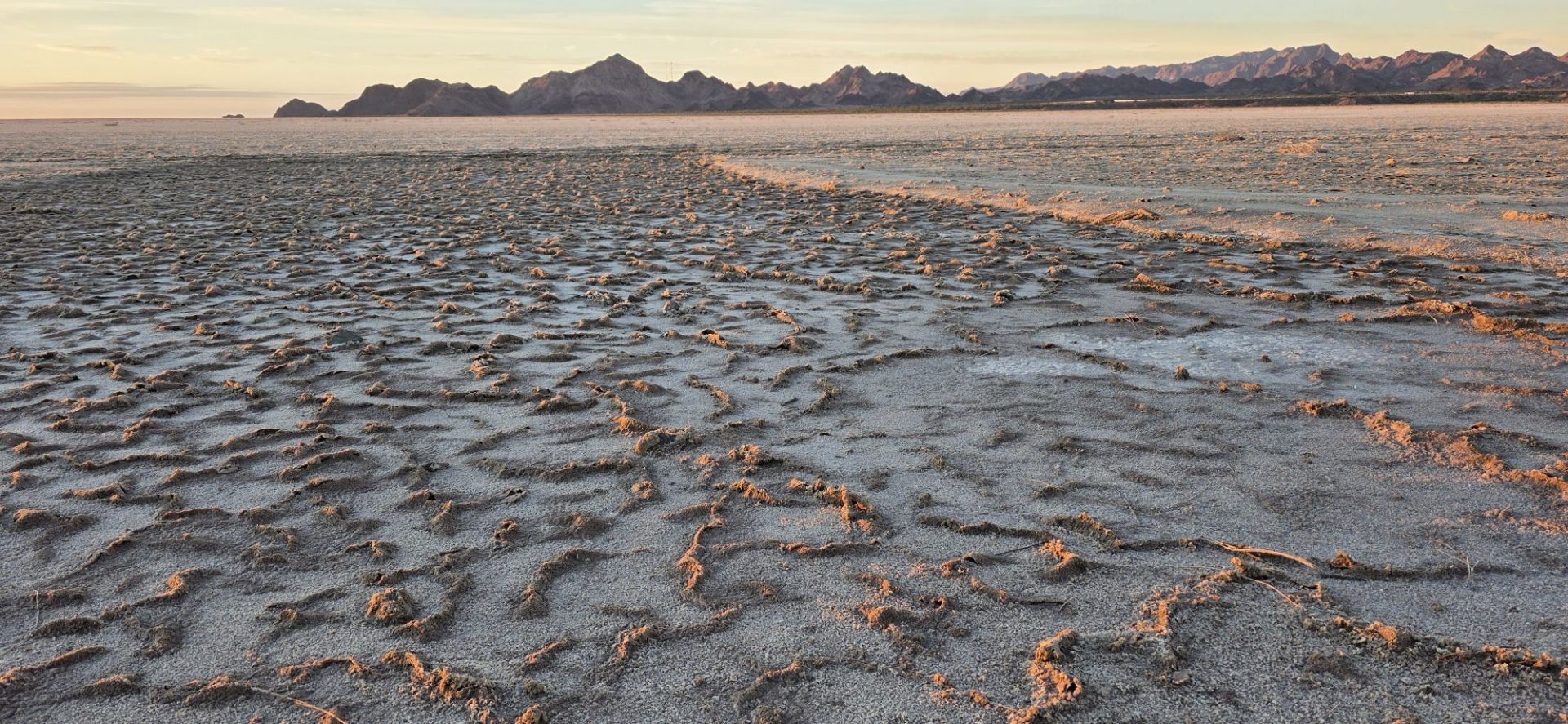 Ce matin, nous quittons le Rancho Mil et Don, son sympathique propriétaire, pour nous diriger vers El Salar, un désert de sel, point de rencontre de la mer de Cortez et du fleuve Colorado. À marée haute, leurs eaux se confondent, parfois avec un simple interstice. L’eau stagne alors dans de petites lagunes qui s’évaporent ensuite sous l’effet des températures élevées, ne laissant qu’une fine couche de sel cristallin. Nous avons hâte de découvrir cela.