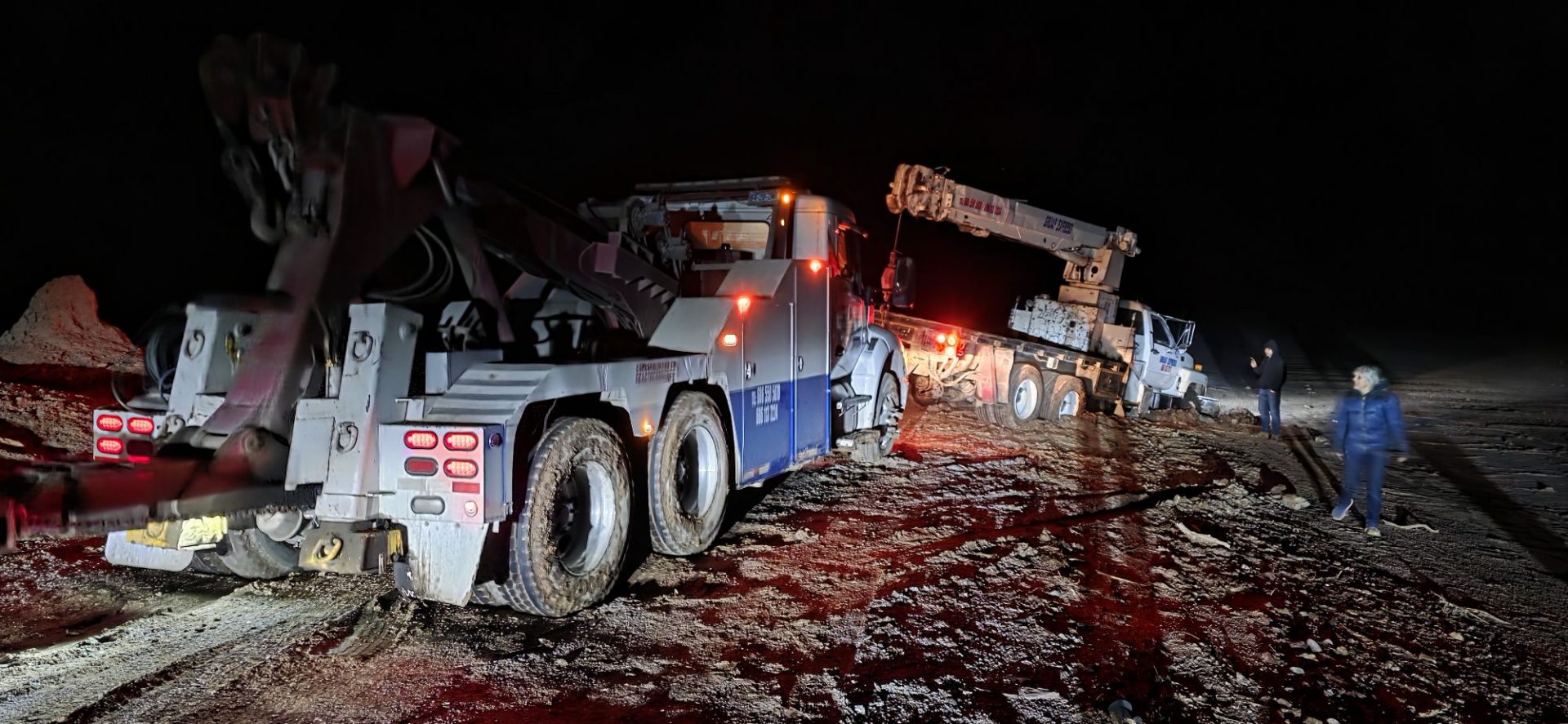 Comme il fait nuit, nous suivons les 2 dépanneuses et surtout, nous faisons confiance au patron… Quelle erreur de notre part 🥴
