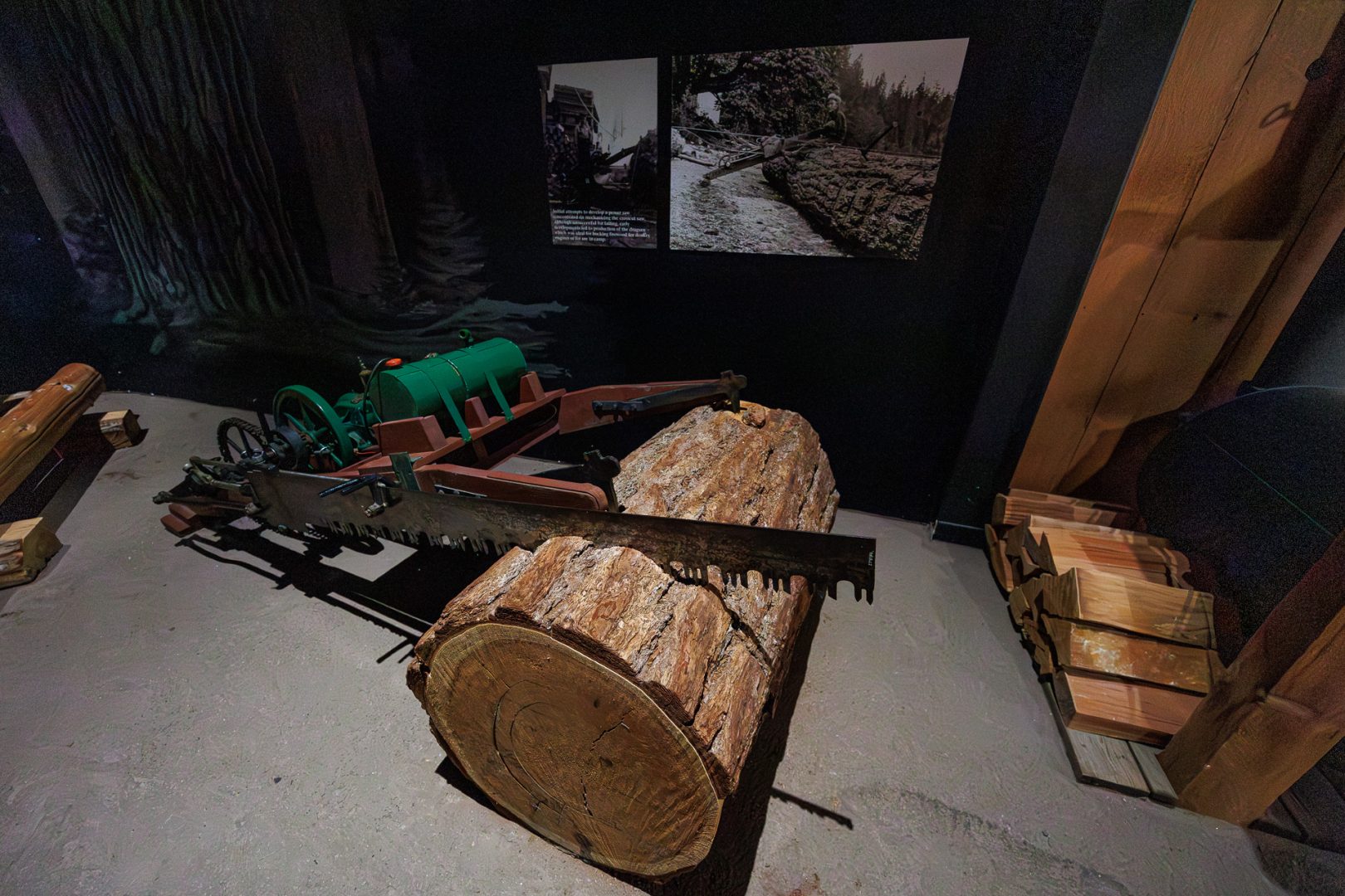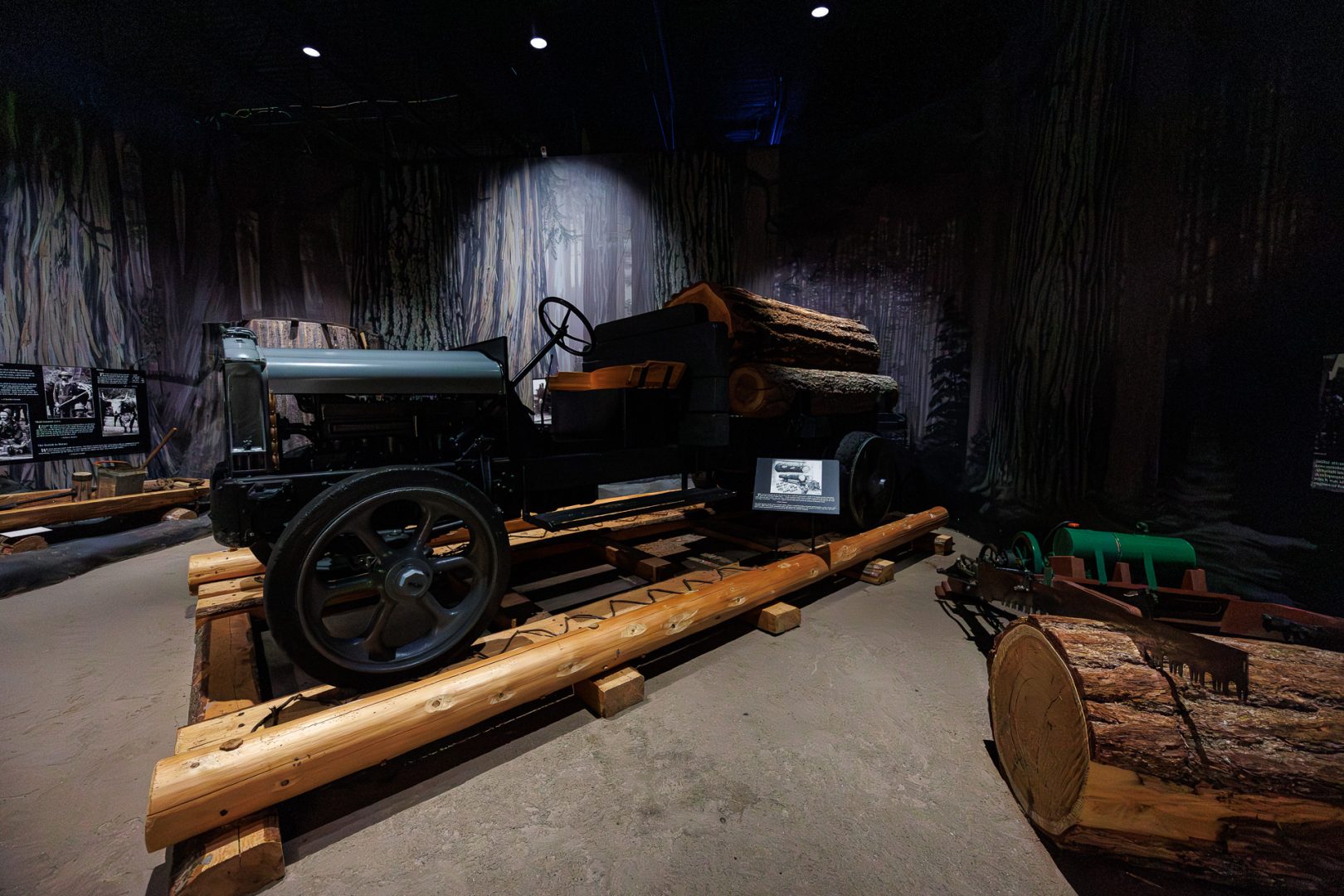 L’industrie du bois remonte au début du 20ème siècle. Au début, le bois était tiré par des chevaux ou des bœufs… l’industrie automobile a ensuite contribué avec ces premiers camions à soulager autant l’homme que l’animal.