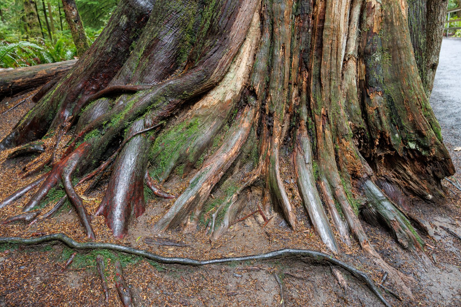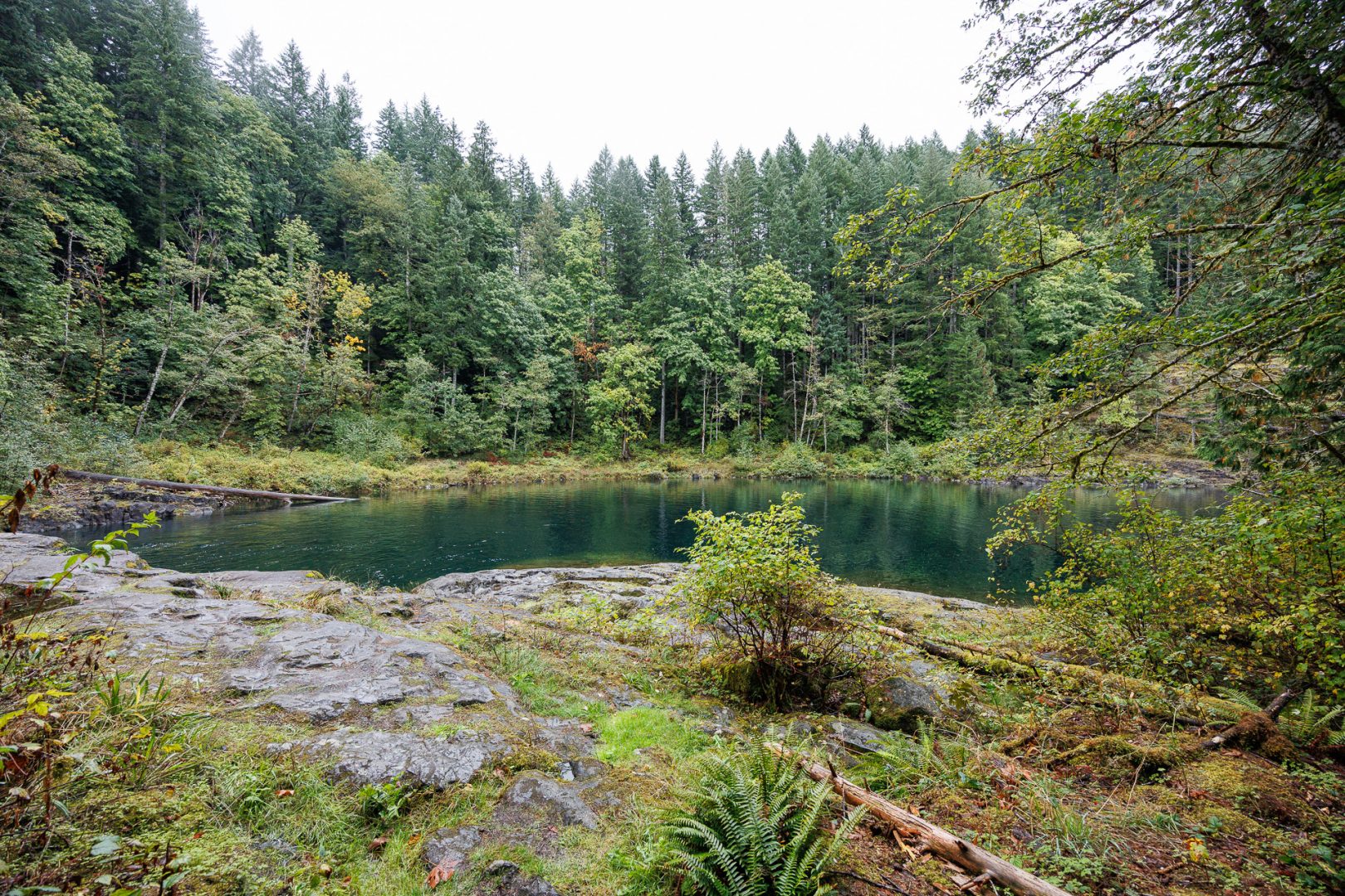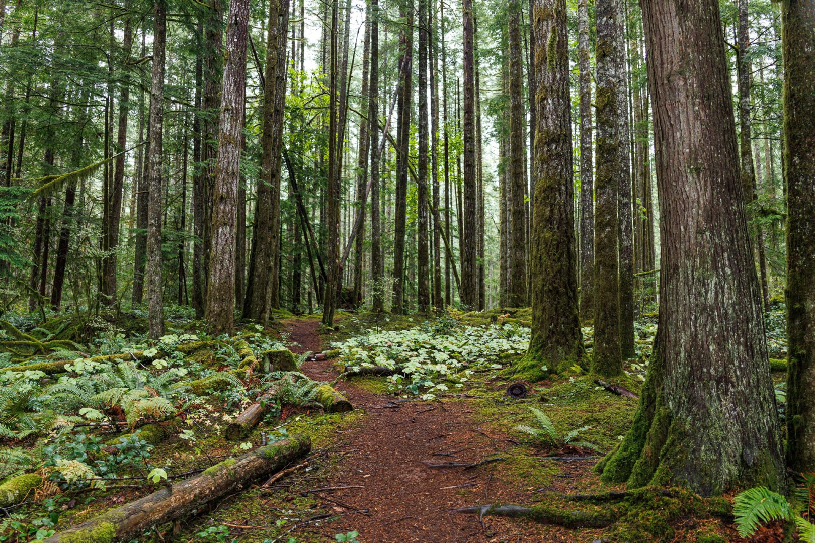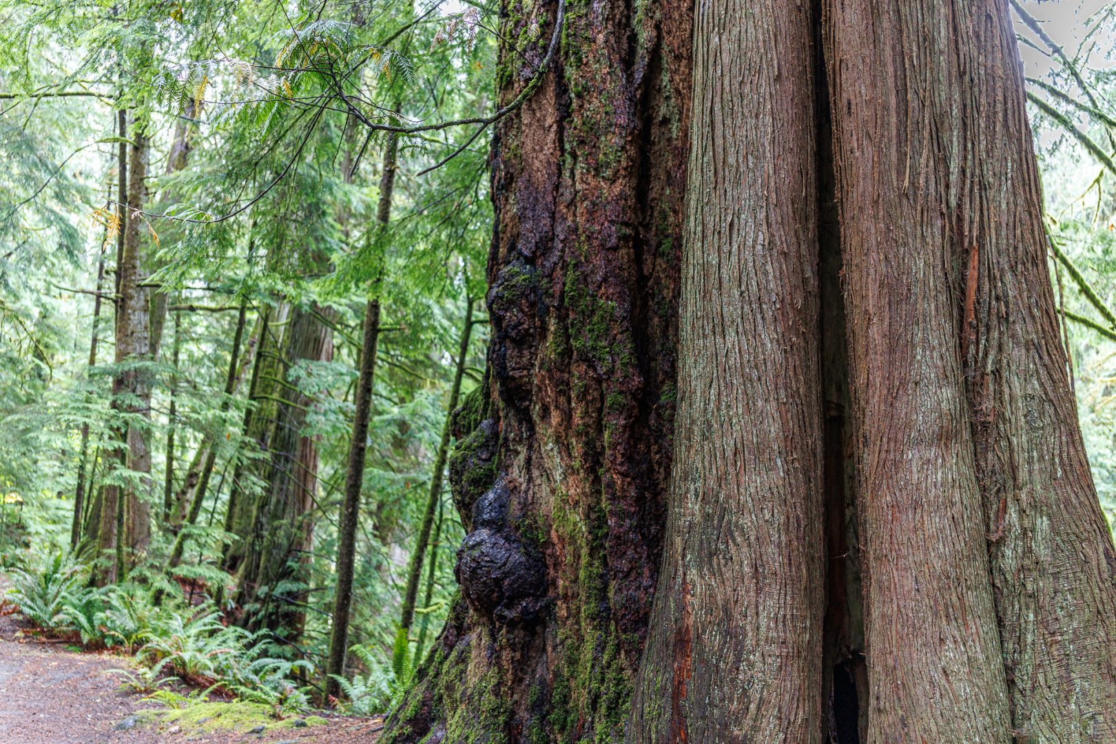 Un joli sentier à travers bois nous conduit près de la rivière. Depuis notre arrivée sur l’ile de Vancouver, nous avons remplacé les sommets enneigés par les forêts majestueuses composées principalement de cèdres rouges de l’Ouest (thuyas géants) et de sapins de Douglas. C’est très différent mais tout aussi beau 🤩 !