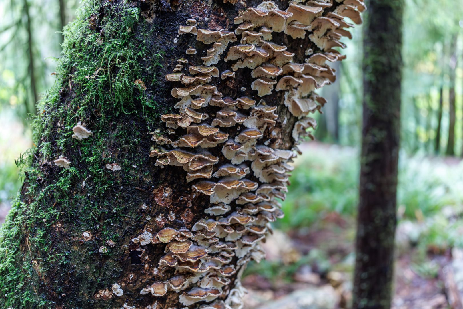 Belle décoration pour cet arbre mais il ne faut pas se fier aux apparences … ces champignons sont en train de le détruire en provoquant son pourrissement. Beau rôle écologique !