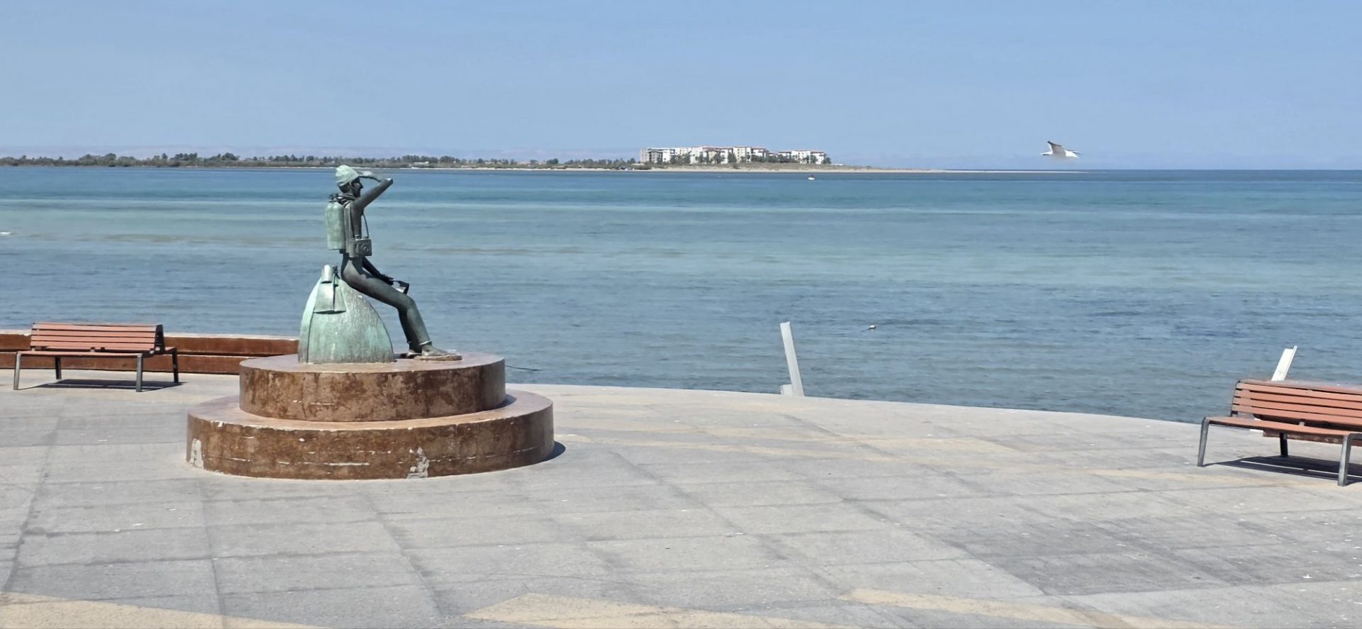 Nous revoilà à La Paz, sur le Malecón. On aperçoit le commandant Cousteau en train d’observer la mer. Mais que peut-il bien faire ici 🤔 ?