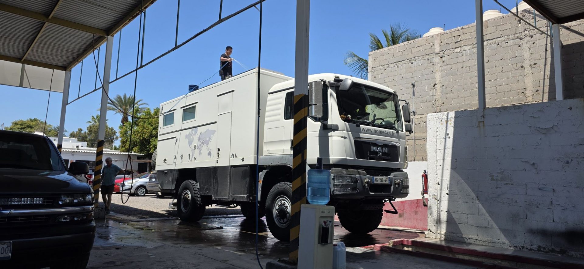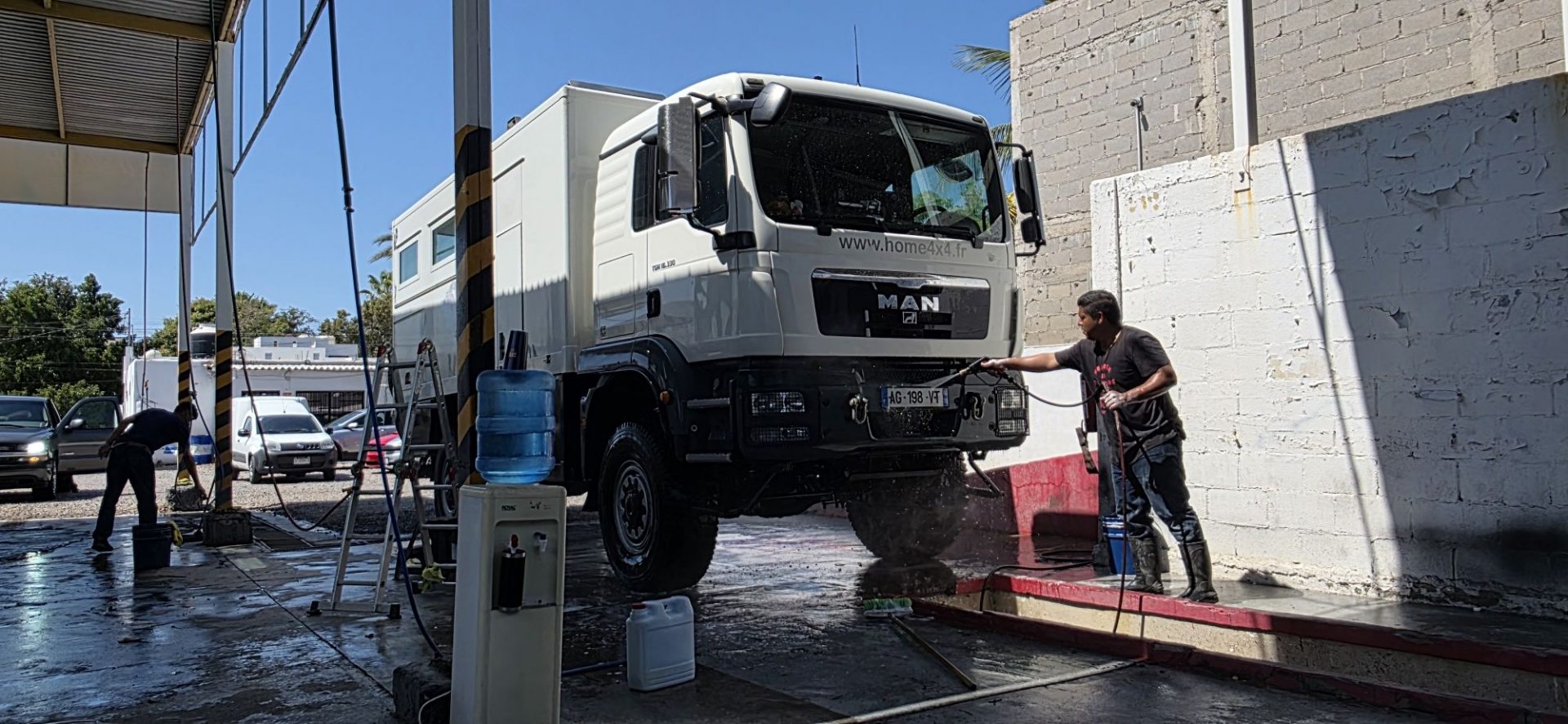 Nous emmenons le camion prendre une douche bien méritée avec tout ce sable et ce sel accumulés pendant notre séjour en Basse-Californie.
