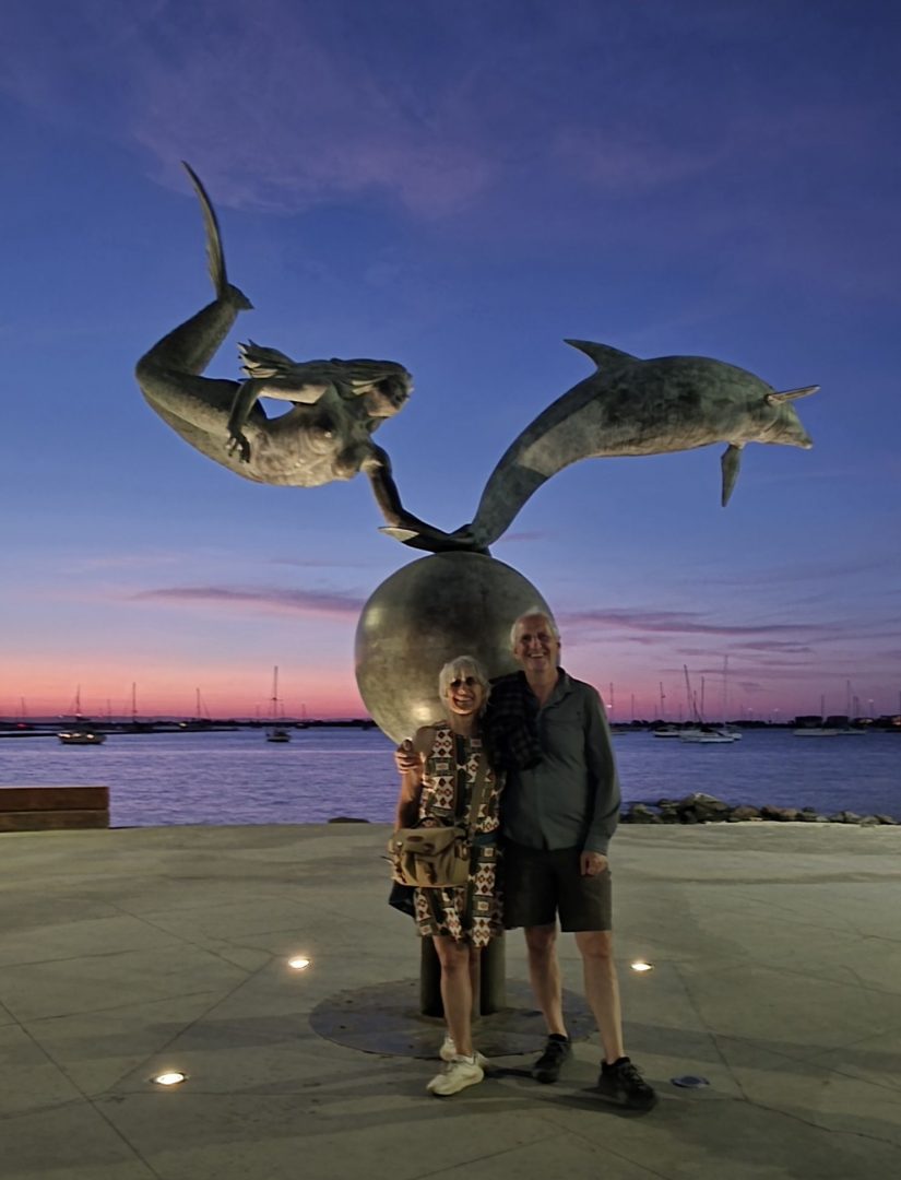 Rendus sur le front de mer, le coucher de soleil nous inspire pour la photo-souvenir sous cette belle sculpture 🤩😍