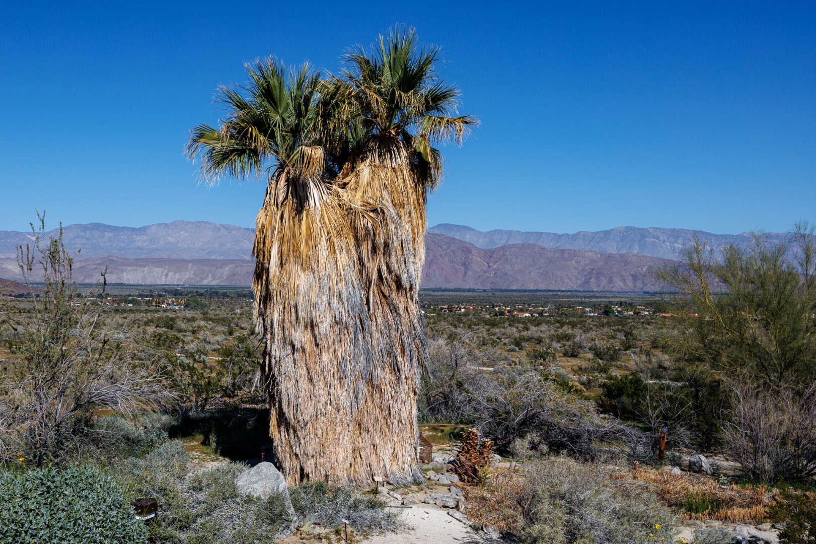 Une belle rangée de palmiers de Californie nous accueille, le seul palmier originaire de l’État. Il posséde aussi le joli nom de palmier jupon et peut mesurer jusqu’à 23 mètres de haut.