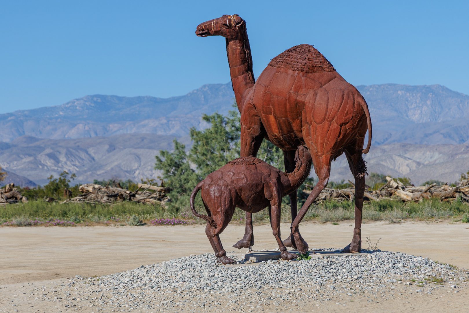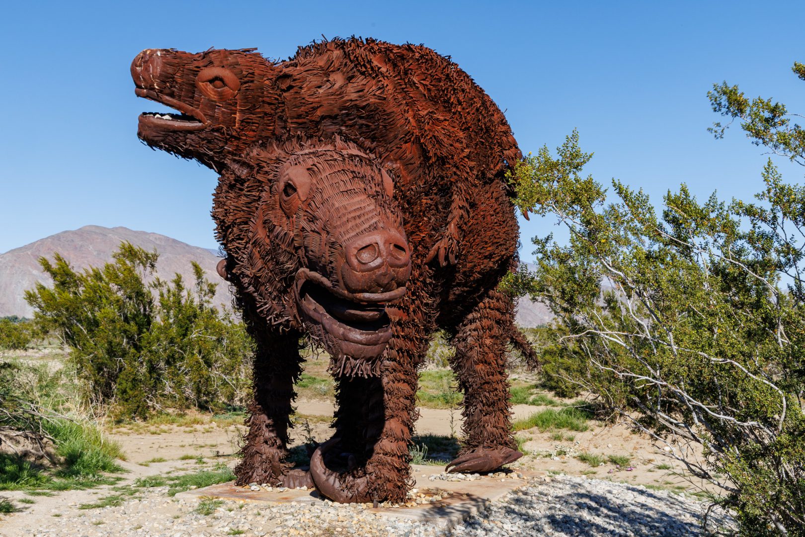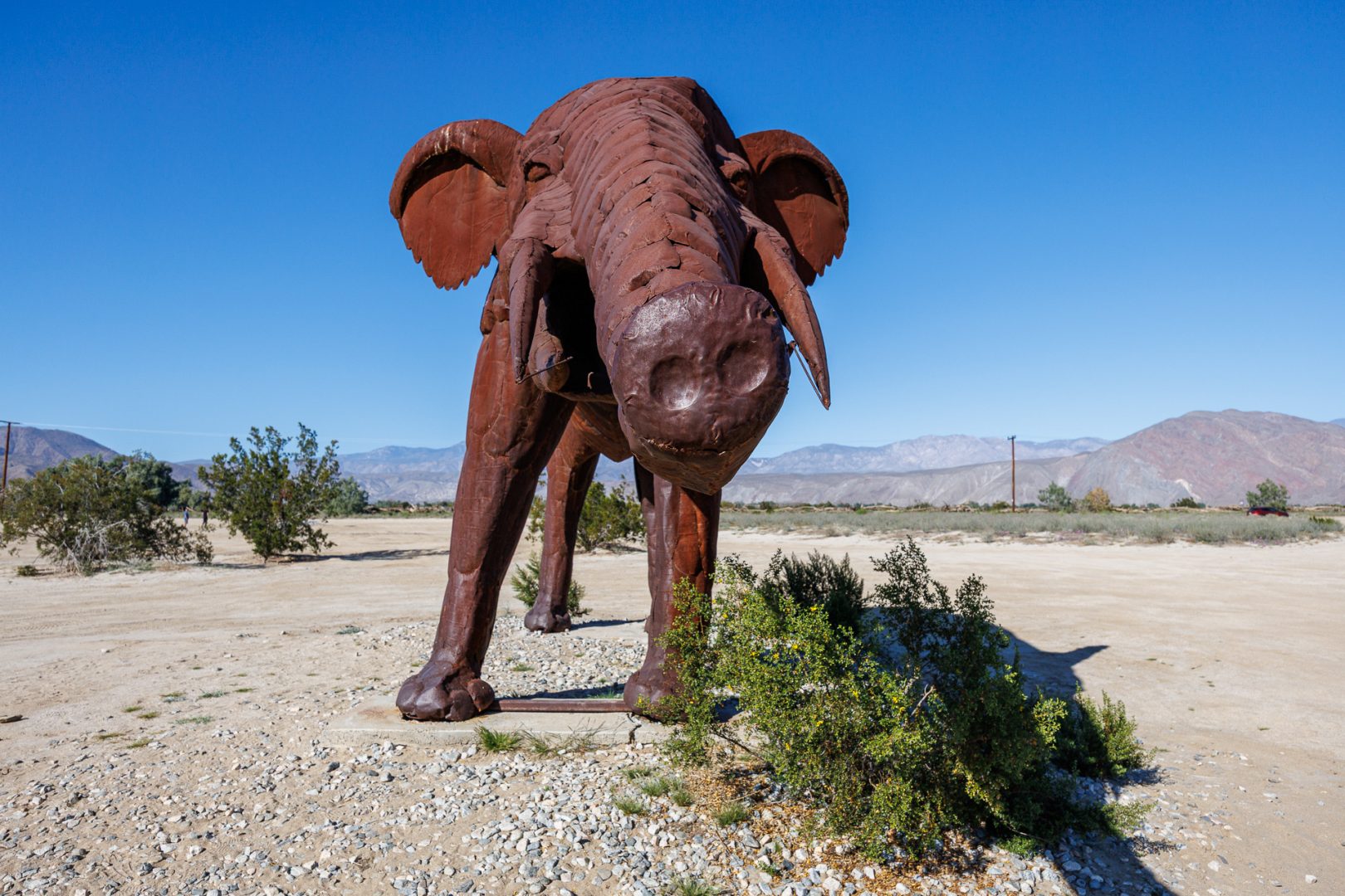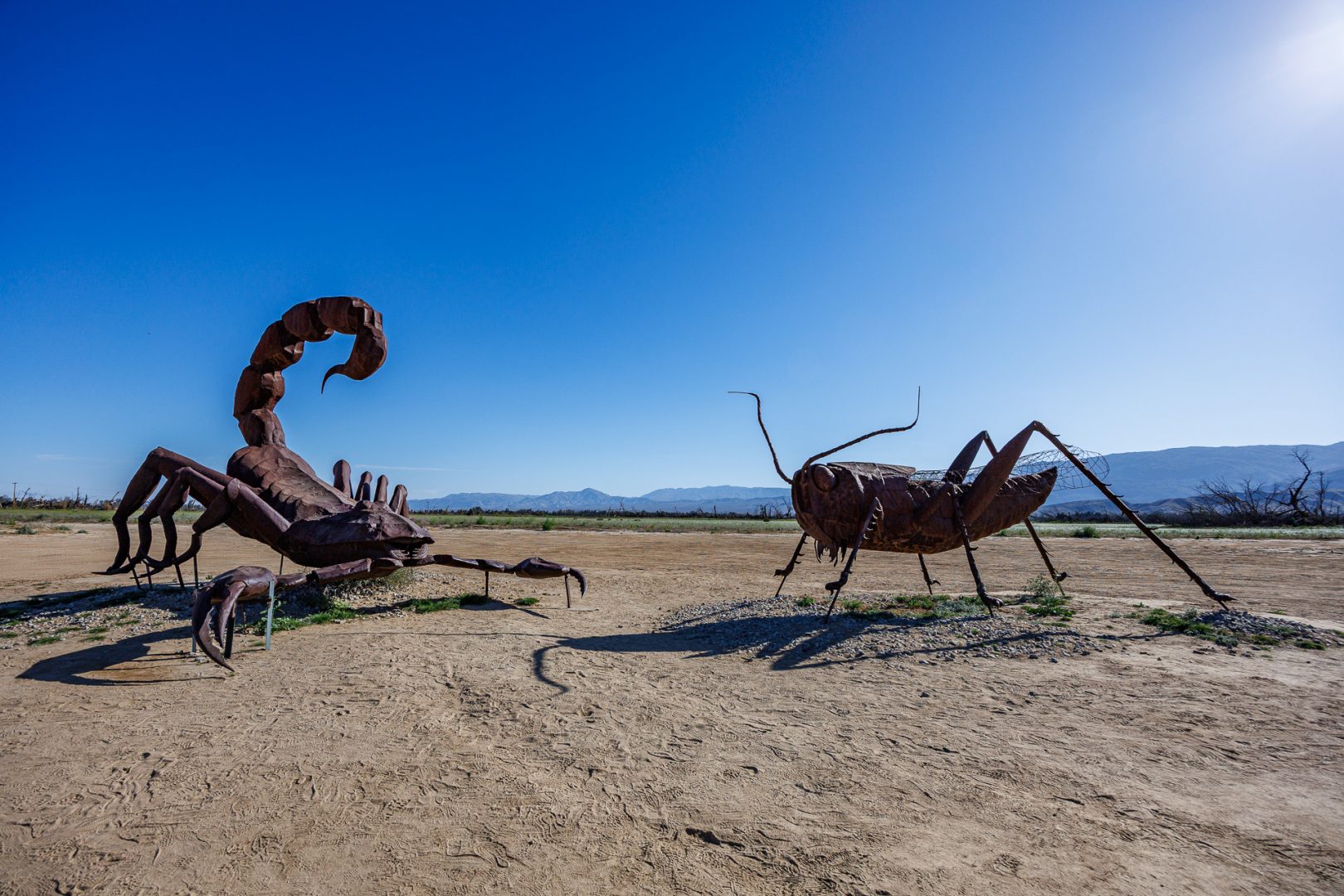 Nous quittons ensuite ce bel endroit pour nous rendre dans le Parc de Galleta Meadows qui se trouve à proximité. Dennis Avery, propriétaire de ces terrains, a décidé d’agrémenter ces vastes plaines désertiques de sculptures. Il a fait appel à un sculpteur célèbre, Ricardo Breceda. Ricardo Breceda est un artiste connu pour ses grandes sculptures d’animaux en métal .