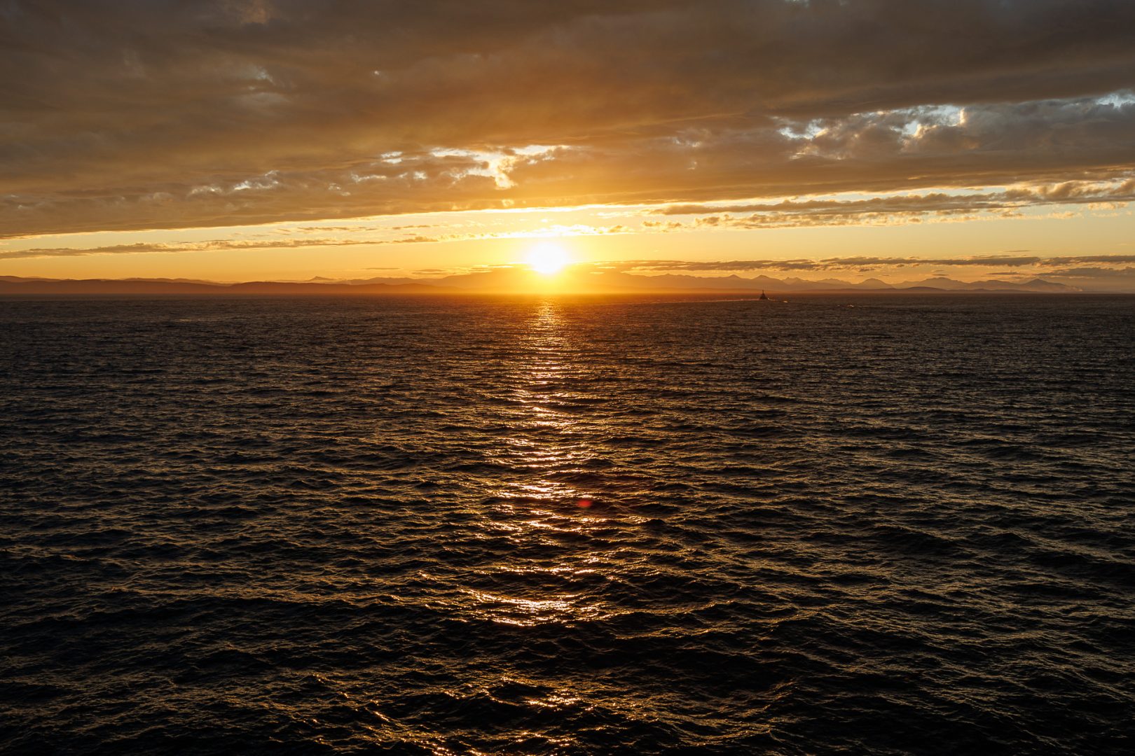 Notre arrivée au sud-ouest de Vancouver est accompagnée d’un beau coucher de soleil.
