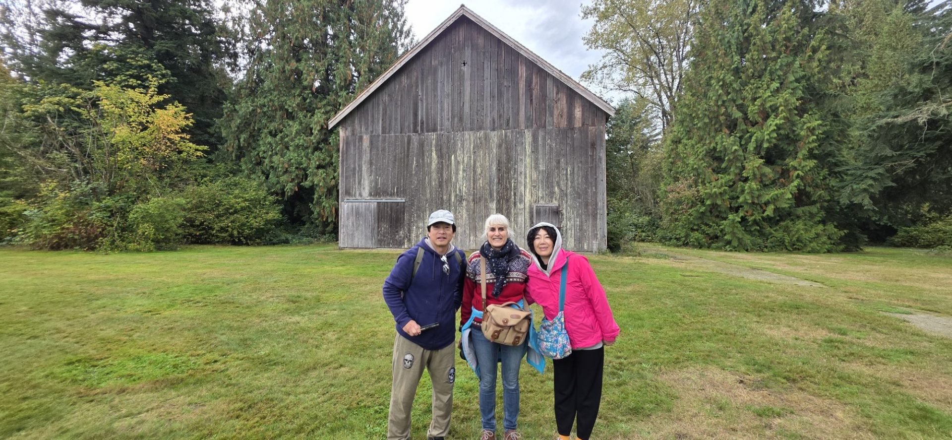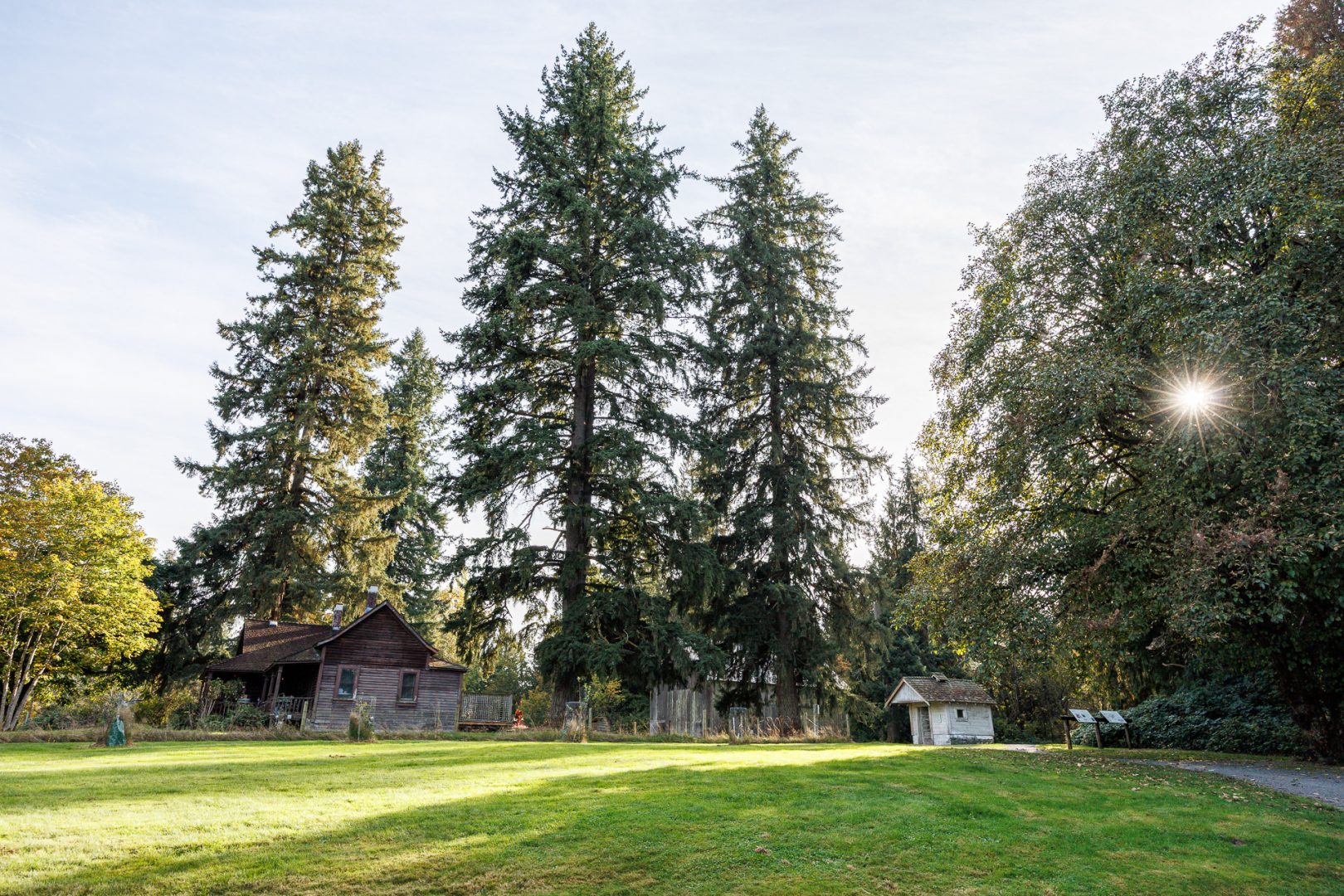 216294 km : Aujourd’hui nous allons emprunter un sentier pédestre qui nous conduira à Fort-Langley appelé « Fort to Fort Trail ». Nous nous posons sur le parking du Derby Reach National Park. Juste en face de nous se trouve une ancienne ferme qu’un charmant couple d’habitants de Vancouver nous conseille fortement de visiter. Elle date de 1909. Il s’agit d’une propriété privée, nous ne pouvons la voir que de l’extérieur.