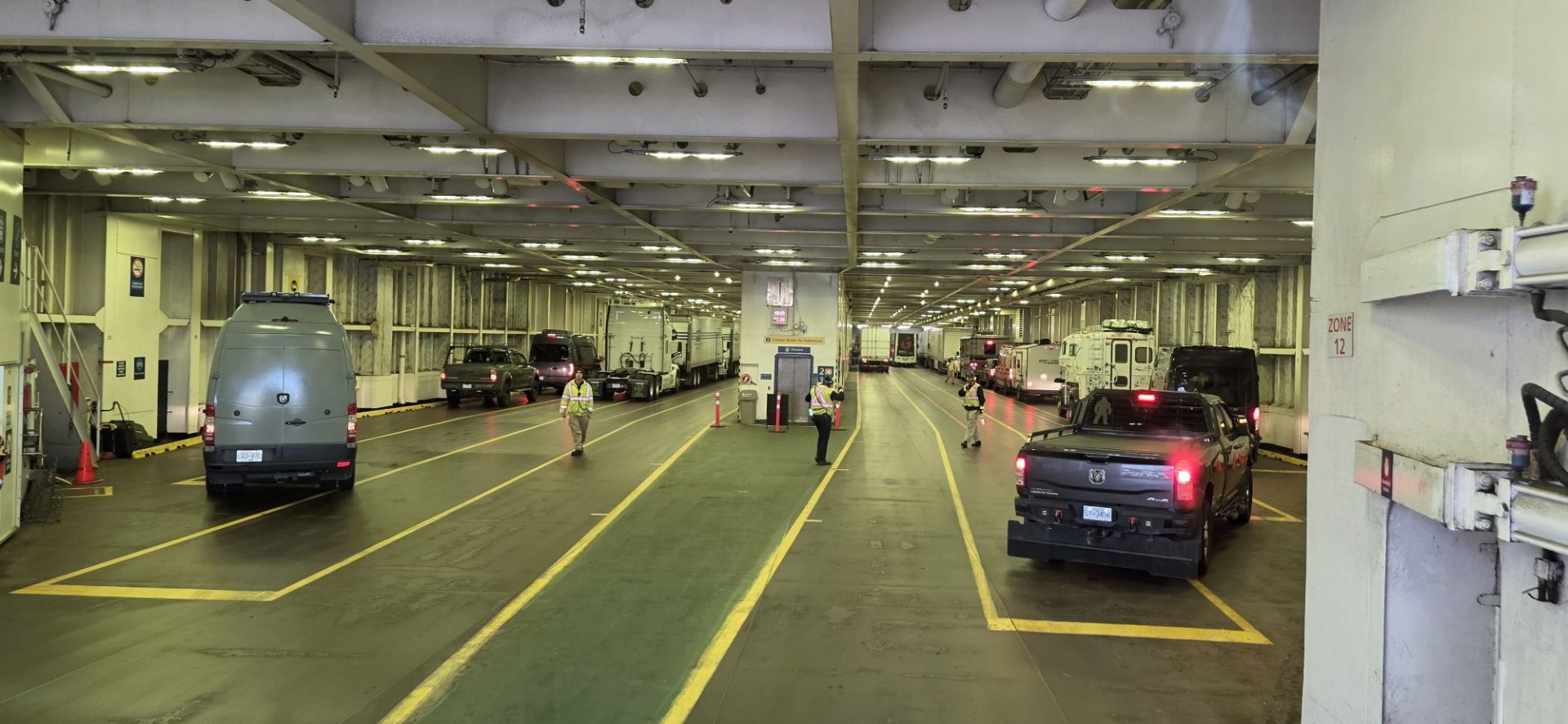 Nous arrivons à l’embarquement pour le ferry vers 15h20. En prenant les billets, la caissière nous informe que le bateau de 17 heures est complet et qu’il nous faudra peut-être prendre celui de 19 heures. Nous croisons les doigts 🤞. Les dieux sont avec nous… Nous embarquons sur le ferry de 17 heures 🎉🎊🥳 !