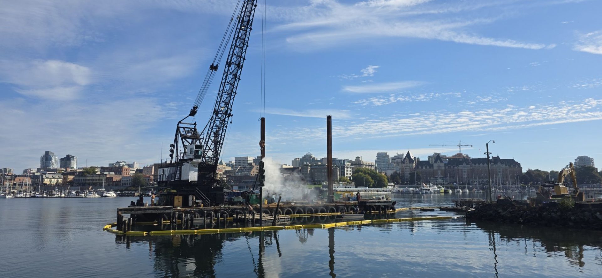 216194 km : Avant de quitter Victoria, nous allons visiter le Parlement de Colombie-Britannique que nous n’avons pas pu visiter hier en raison d’une manifestation de fonctionnaires devant l’entrée du bâtiment. Nous empruntons à nouveau la promenade en bord de mer. C’est l’occasion de découvrir une grue spécialisée dans le retrait des pieux de bois de cette ancienne digue. Par contre, cela chauffe un peu… 😯