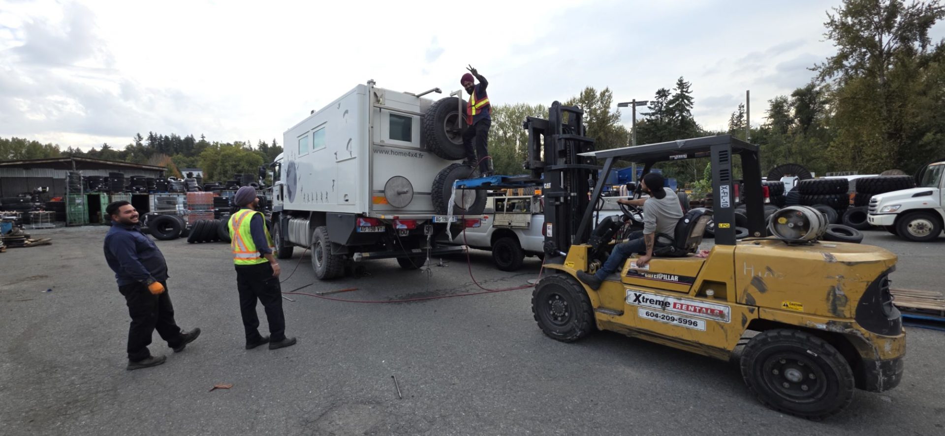 216284 km : La matinée chez Plett Truck sera consacrée au remplacement du compresseur de climatisation. Enfin ça, c’est ce qui était prévu… Malheureusement le compresseur commandé par Plett, reçu et payé 🙄, n’est pas le bon modèle 😭 En plus, il faut aussi changer une conduite car, lors du desserrage, le filetage de l’écrou de cette conduite sertie s’est détérioré. Bref, on reviendra après la découverte de Vancouver 🤞. On en profitera pour changer le filtre du gaz de climatisation et la valve par la même occasion 🤞🤞🤞
