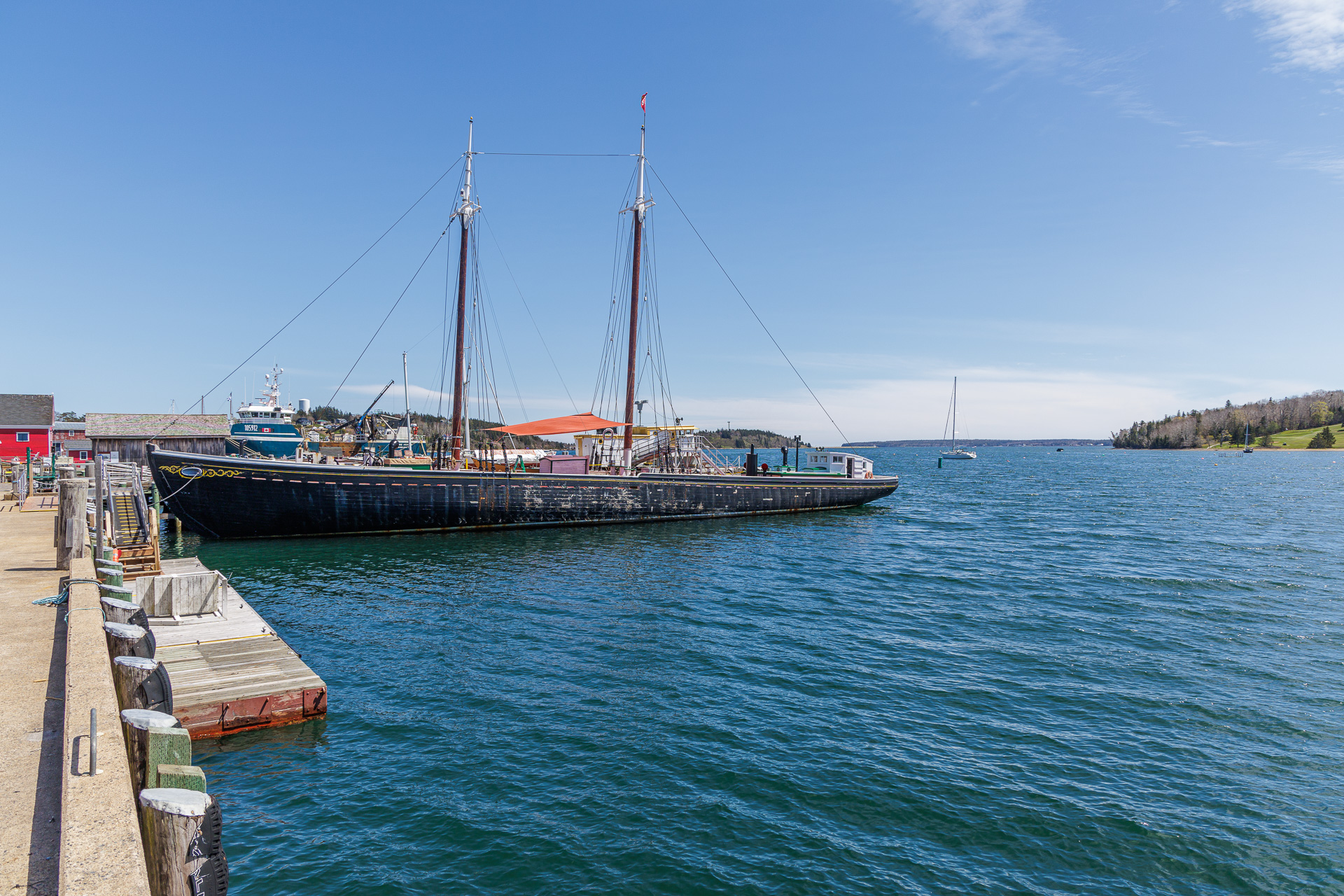 Nous nous rendons sur le port où nous découvrons le Bluenose II, la copie parfaite du Bluenose. Le Bluenose fut fabriqué dans les chantiers navals de Lunenburg. C’est le navire le plus célèbre de l’histoire canadienne, il était à la fois un navire de pêche conçu pour la pêche à la morue sur les Grands Bancs au large de Terre-Neuve et un bâtiment de course pendant les années 1920 à 1930. Il remporta le trophée du championnat de voile des flottes de pêche de l’Atlantique nord-ouest, en 1921, en 1922 et en 1923. Ce bateau était considéré comme un héros local !
